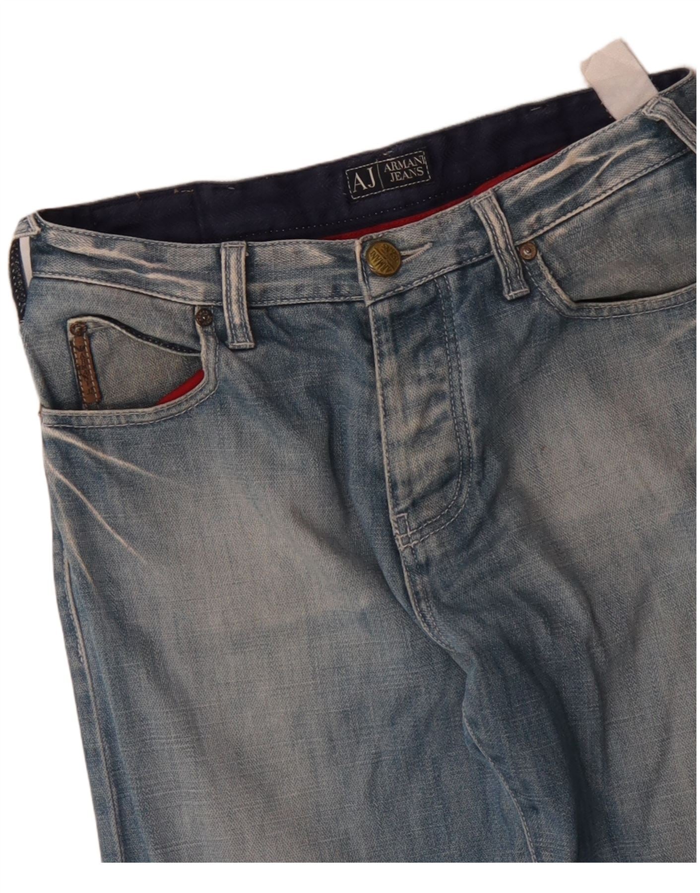 ARMANI Blugi Drepți Distressed Grafic Bărbați W29 L31 Albastru