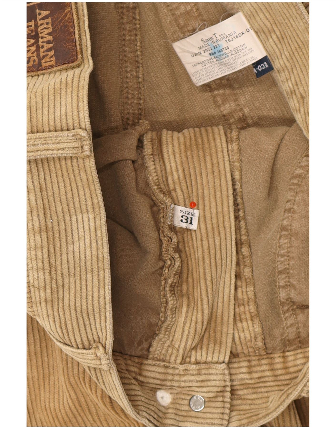 ARMANI Pantaloni subțiri din velur pentru bărbați L31 L30 bumbac maro