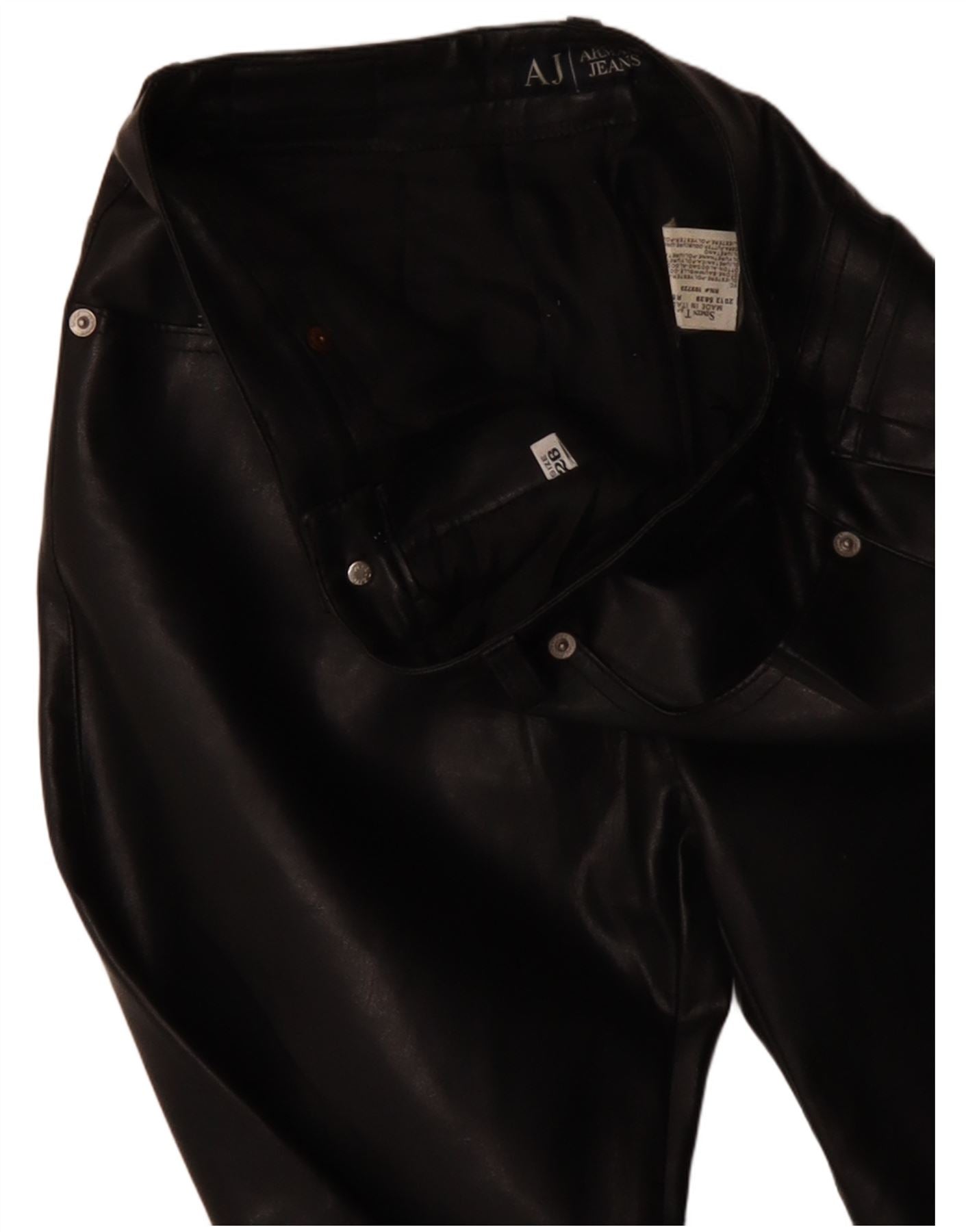 Pantaloni drepți din piele artificială ARMANI pentru femei L26 L31 poliester negru