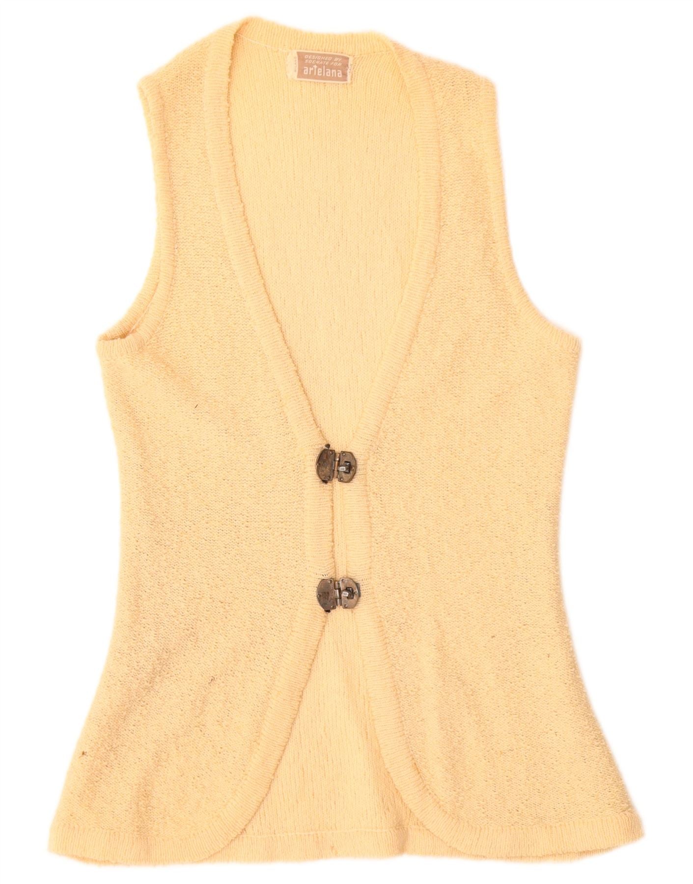 Pulover cardigan din croșetat cu mânecă scurtă pentru femei VINTAGE UK 10 Bej mic