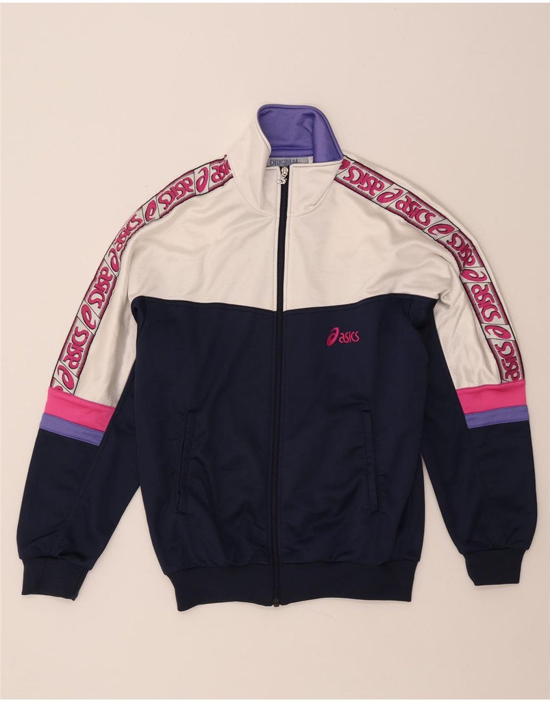 ASICS Mens Graphic Tracksuit Top Jacket IT 48 Medium Navy Blue Colourblock