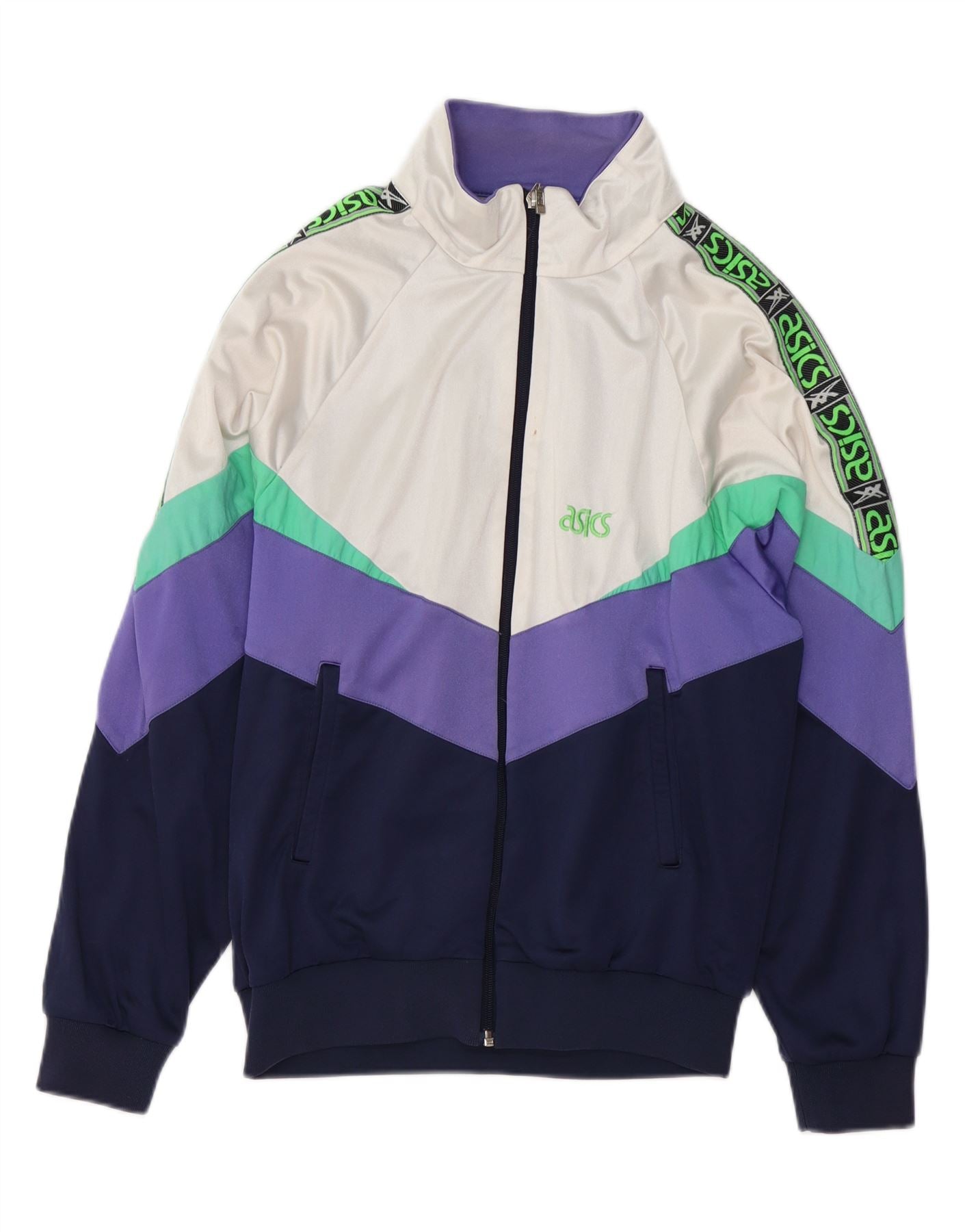 ASICS Mens Graphic Tracksuit Top Jacket Small Navy Blue Colourblock
