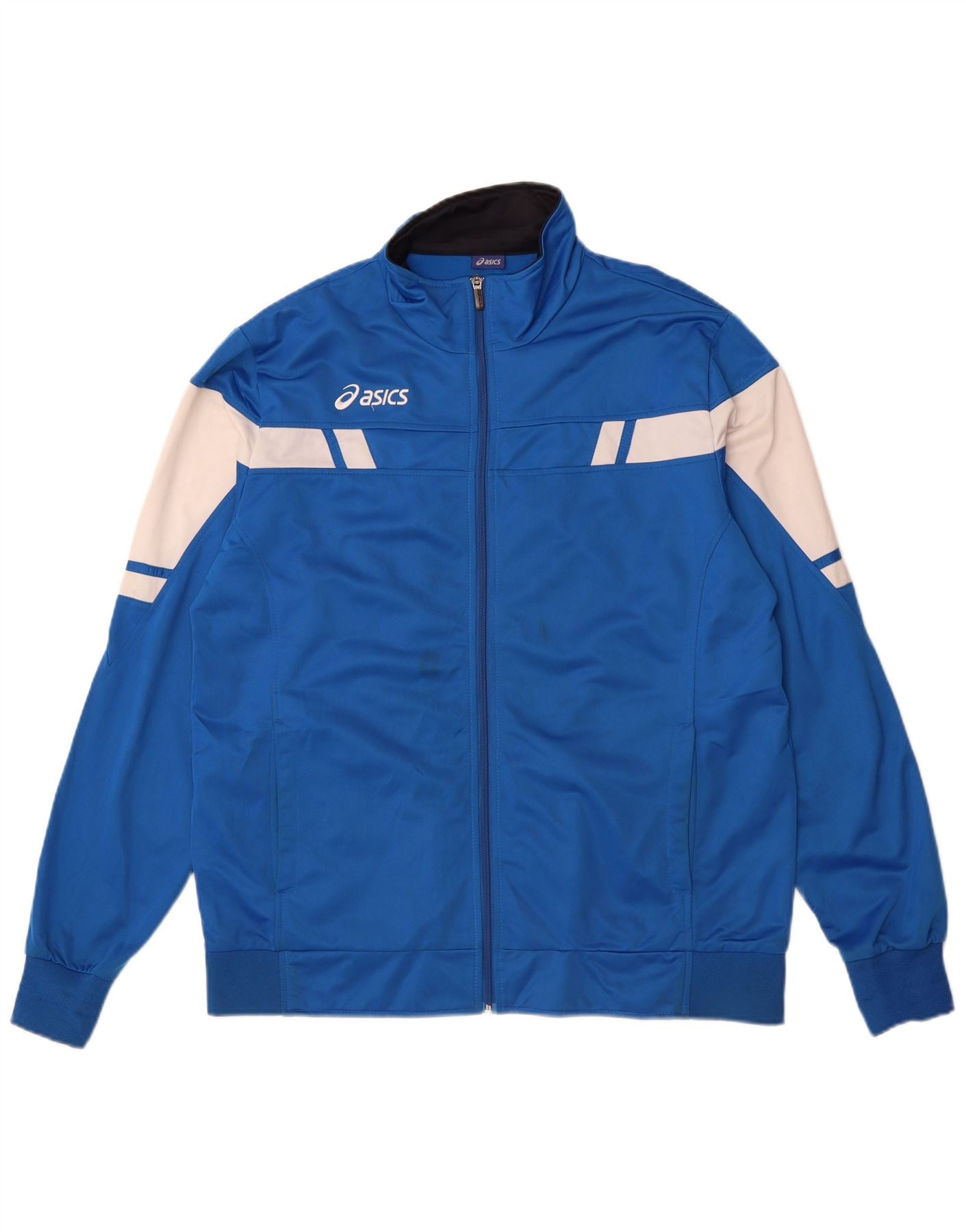 ASICS Womens Graphic Tracksuit Top Jacket 2XL Blue Colourblock Sports