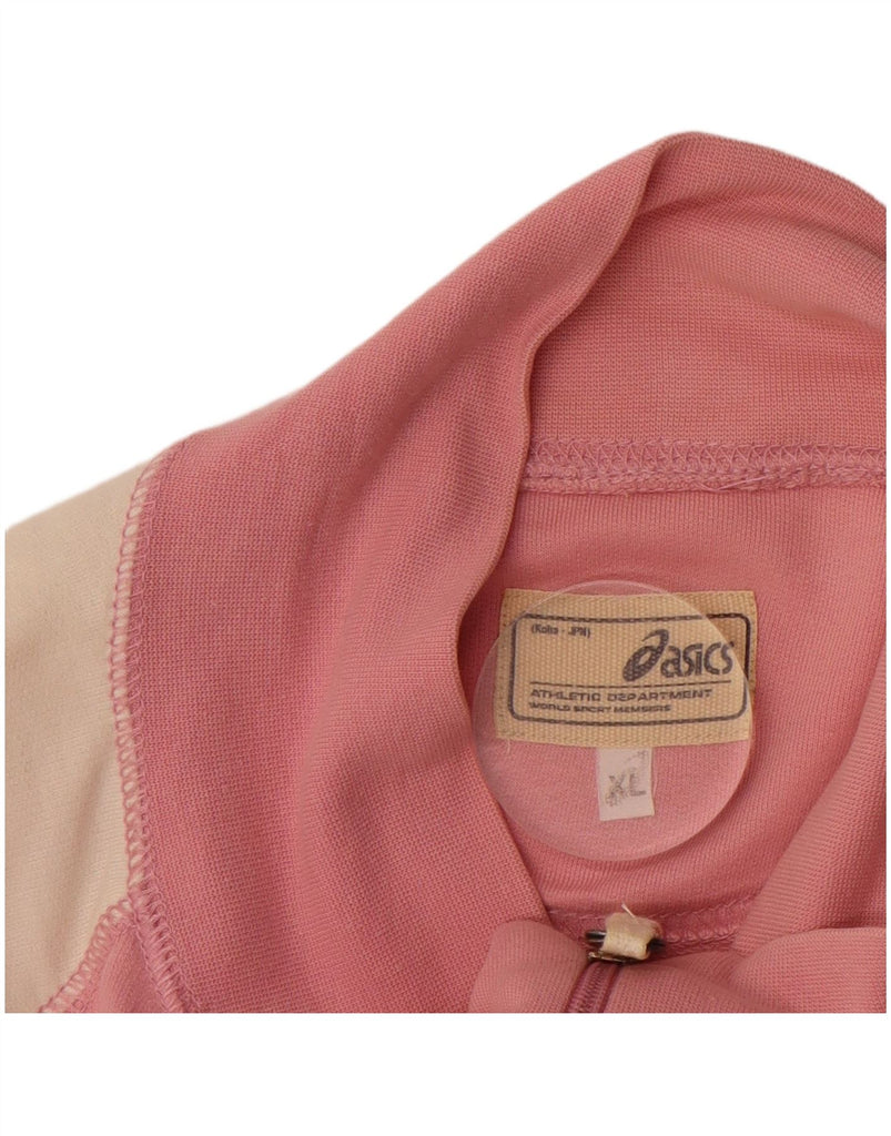 ASICS Womens Tracksuit Top Jacket UK 18 XL Pink Colourblock Cotton Sports