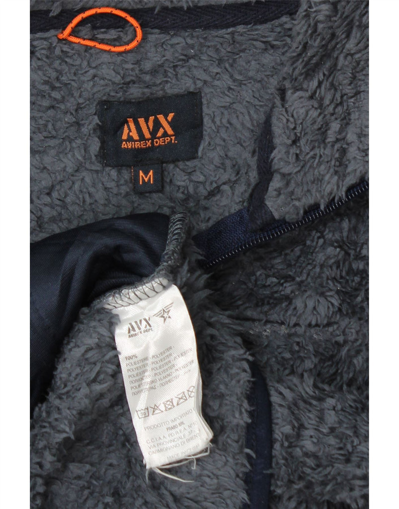 AVIREX Mens Fleece Jacket UK 38 Medium Navy Blue Polyester