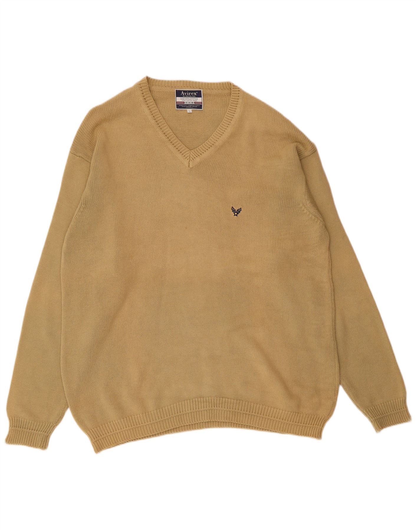 Home > Îmbrăcăminte vintage Avirex > a bărbaţilor > Pulover pentru bărbați Avirex cu decolteu în V, mare, bej, bumbac