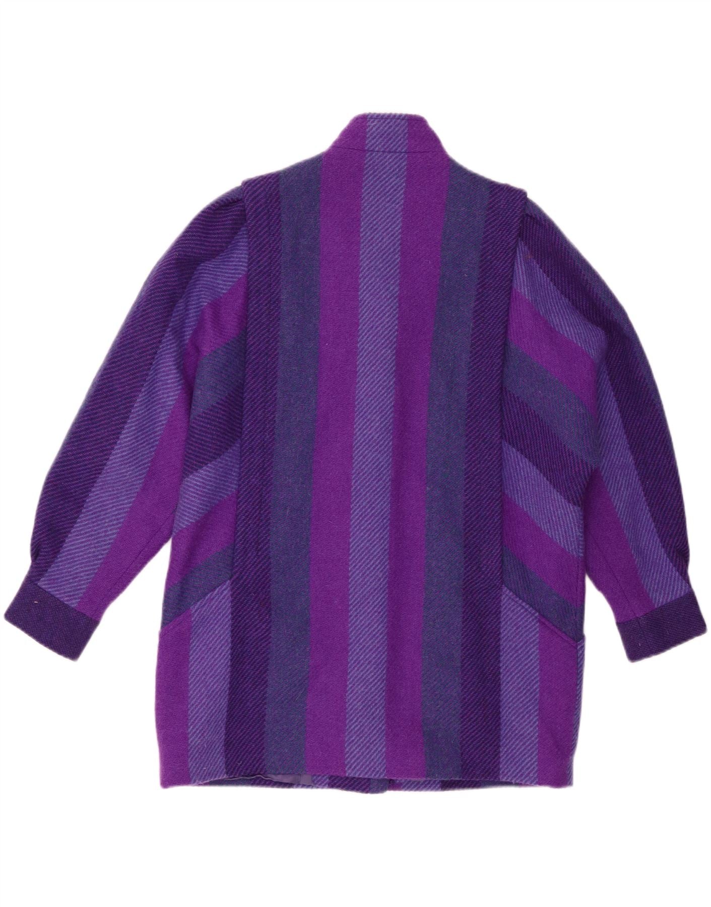 AVOCA Womens Overcoat UK 16 Large Purple Striped New Wool