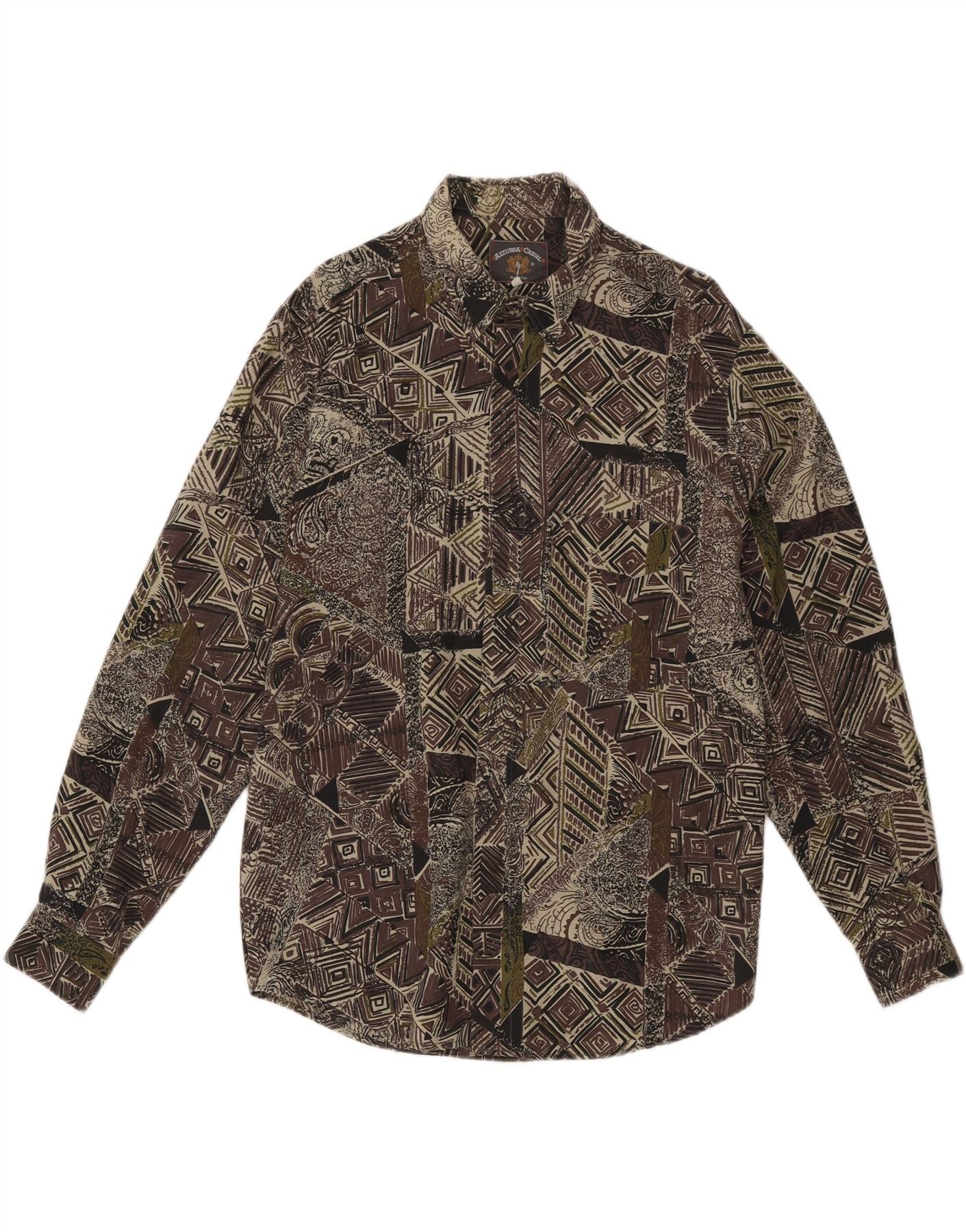 - Descriere AI: Această cămașă pentru bărbați Azzurra Casual este confecționată dintr-o țesătură, oferind o textură confortabilă. Prezintă un model geometric și abstract multicolor uimitor în nuanțe de maro, verde și bej. Decolteul cu guler și mânecile lungi oferă o siluetă clasică. Un buton de închidere trece pe partea din față. Include buzunare practice. Potrivirea obișnuită asigură o purtare confortabilă. Această cămașă în stil retro oferă un aspect distinctiv.