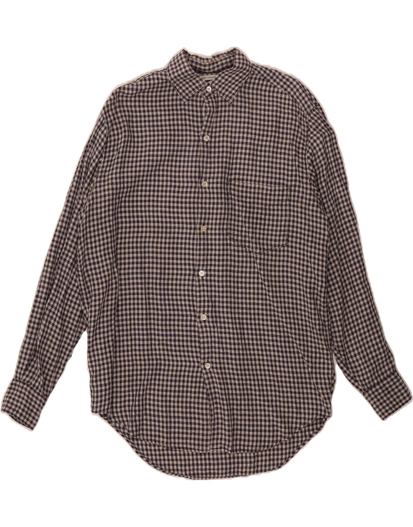 BANANA REPUBLIC Mens Shirt Small Grey Gingham Linen