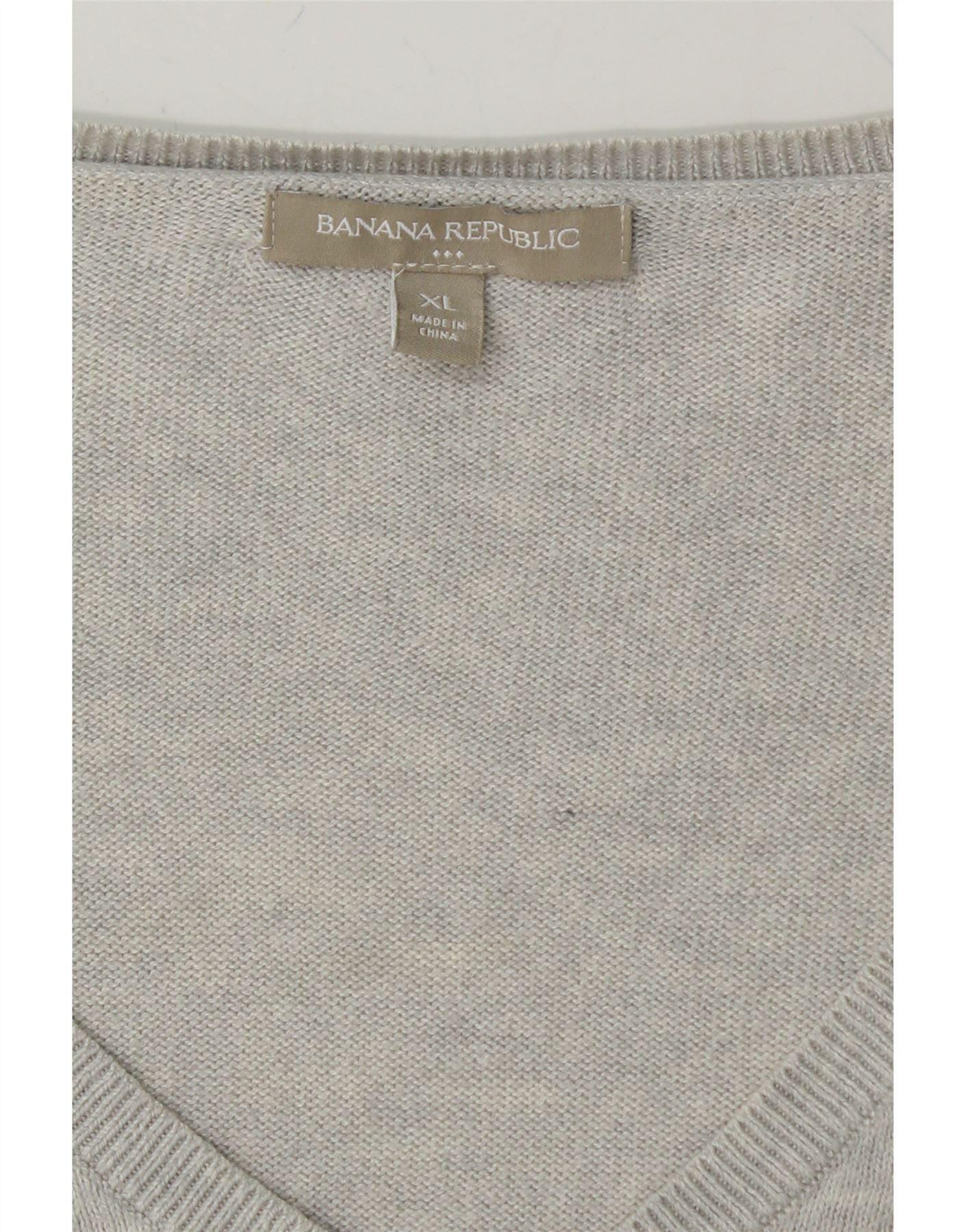 BANANA REPUBLIC Mens V-Neck Jumper Sweater XL Grey Cotton