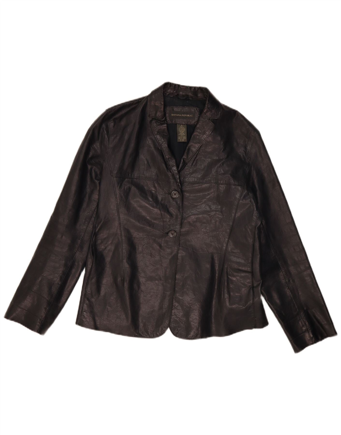 BANANA REPUBLIC Jachetă pentru femei cu 2 nasturi din piele neagră medie US 6