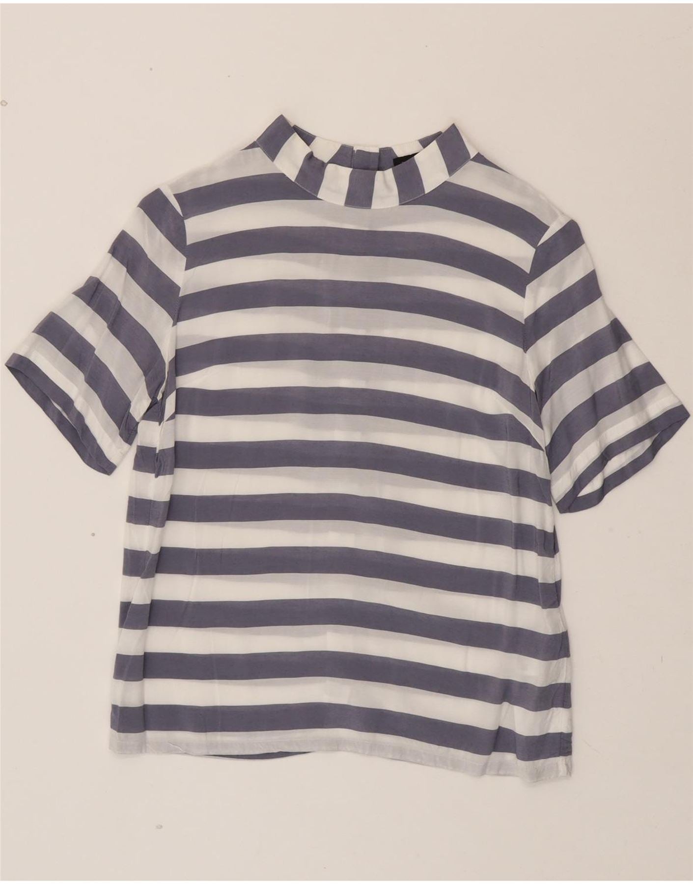 BANANA REPUBLIC Womens Petite Shirt Blouse UK 10 Small Navy Blue Striped
