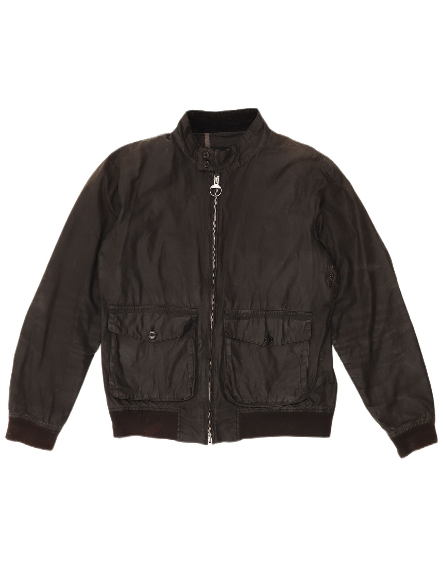 BARBOUR Mens Bomber Waxed Cotton Jacket UK 36 Small Black Cotton