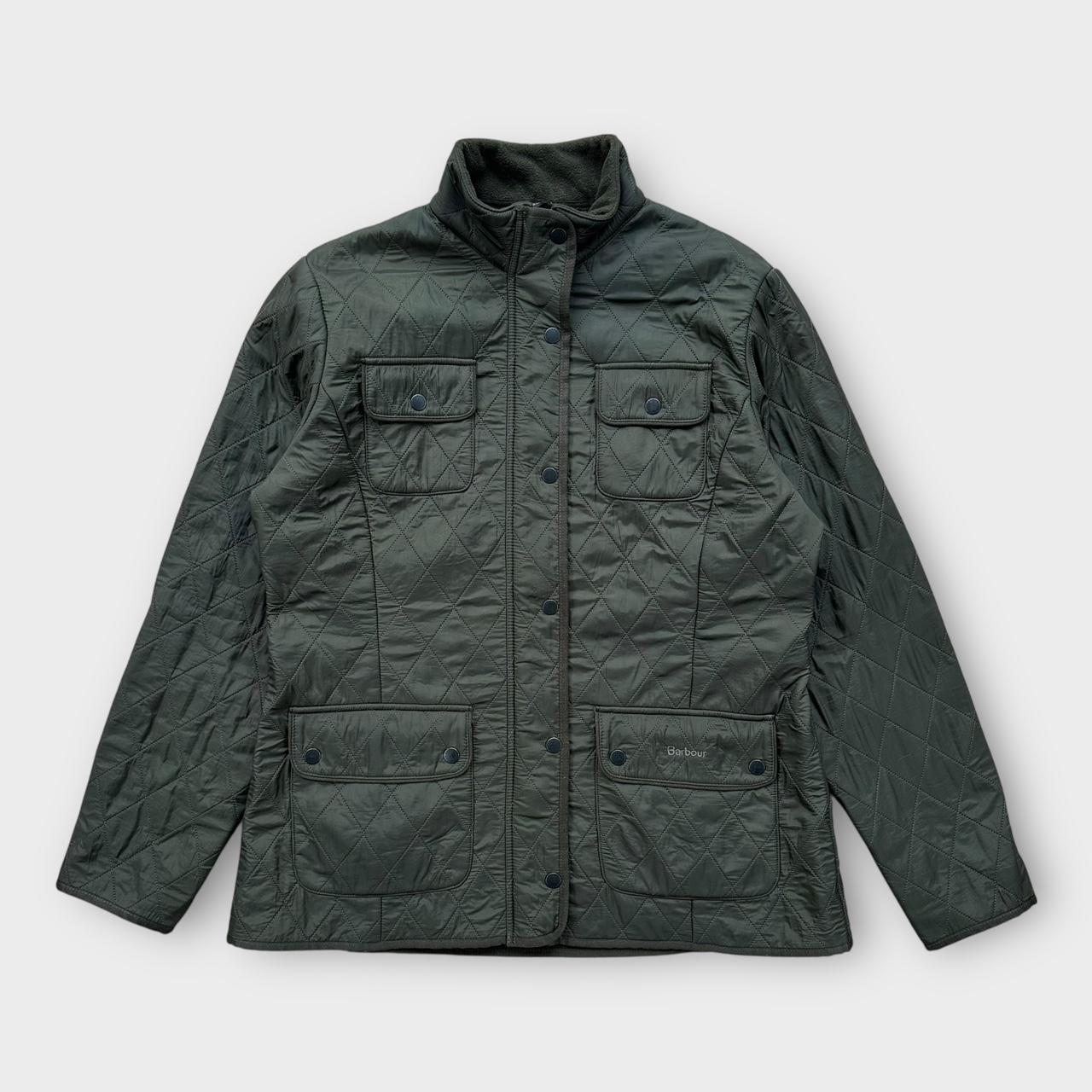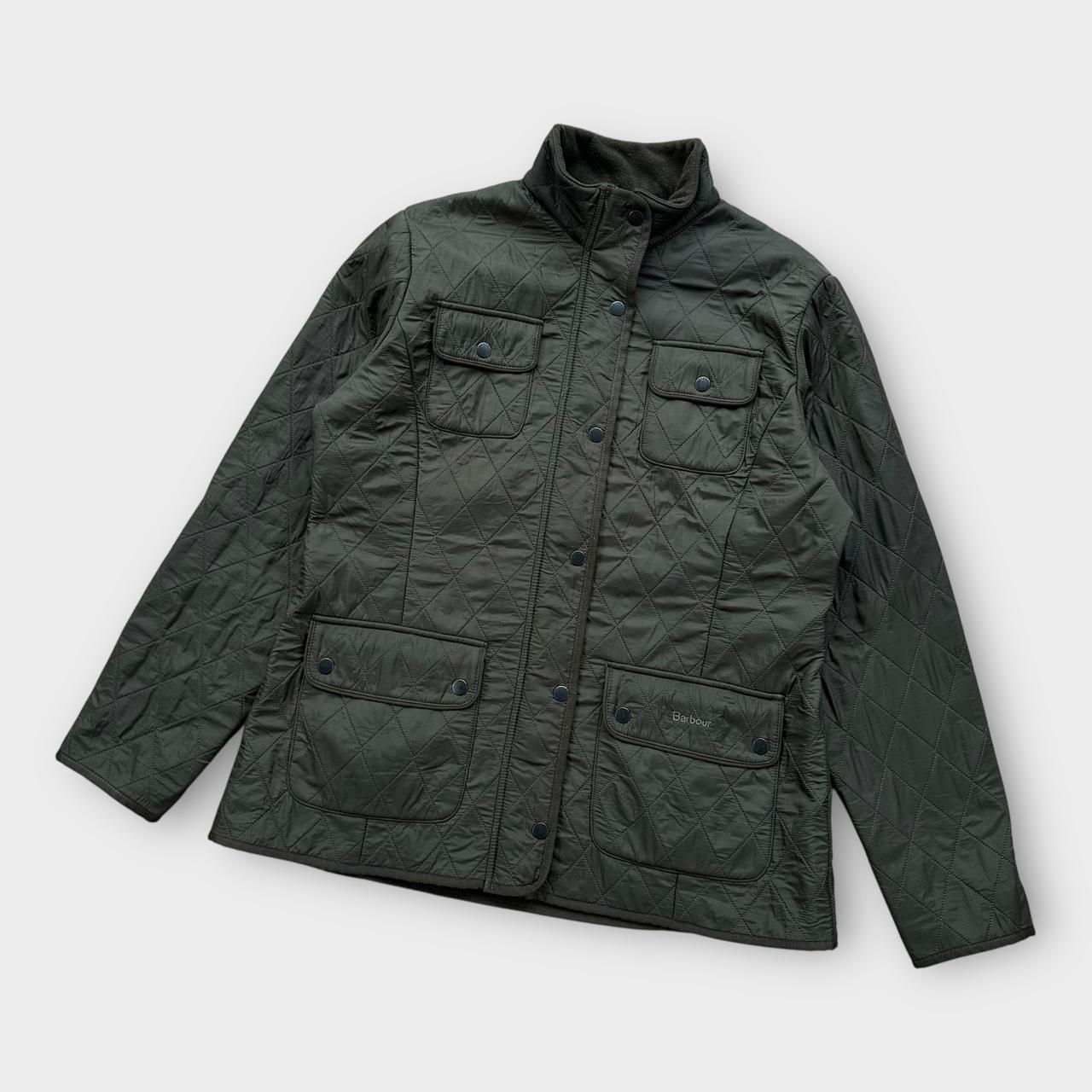 Jachetă modernă Barbour, cu fermoar, matlasată, ușoară, de culoare verde, cu 4 buzunare și logo brodat în față