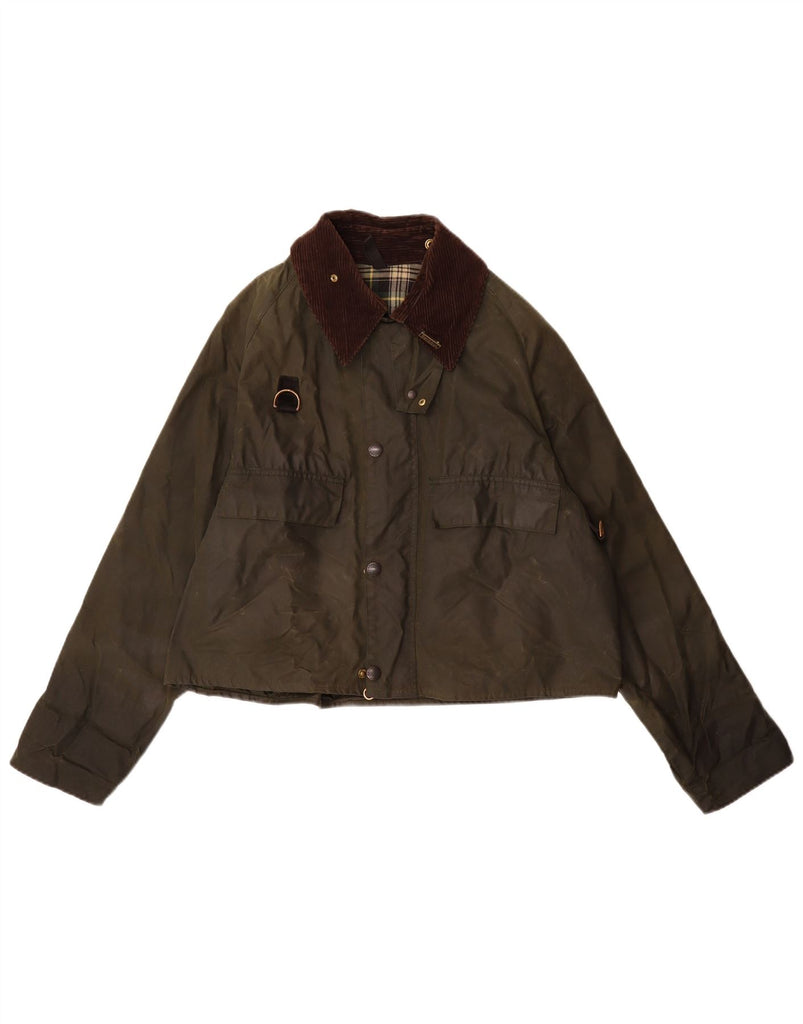 BARBOUR Womens Crop Waxed Cotton Jacket UK 14 Medium Khaki Cotton