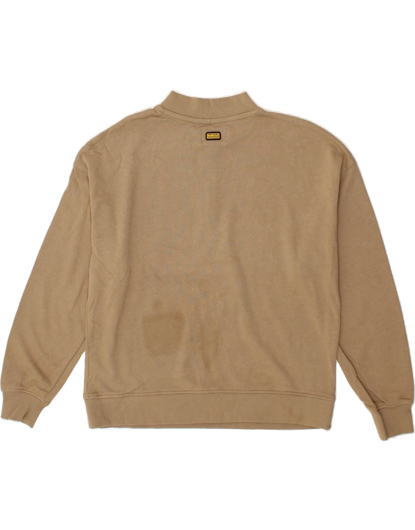BARBOUR Womens Oversized Zip Neck Sweatshirt Jumper UK 8 Small Brown