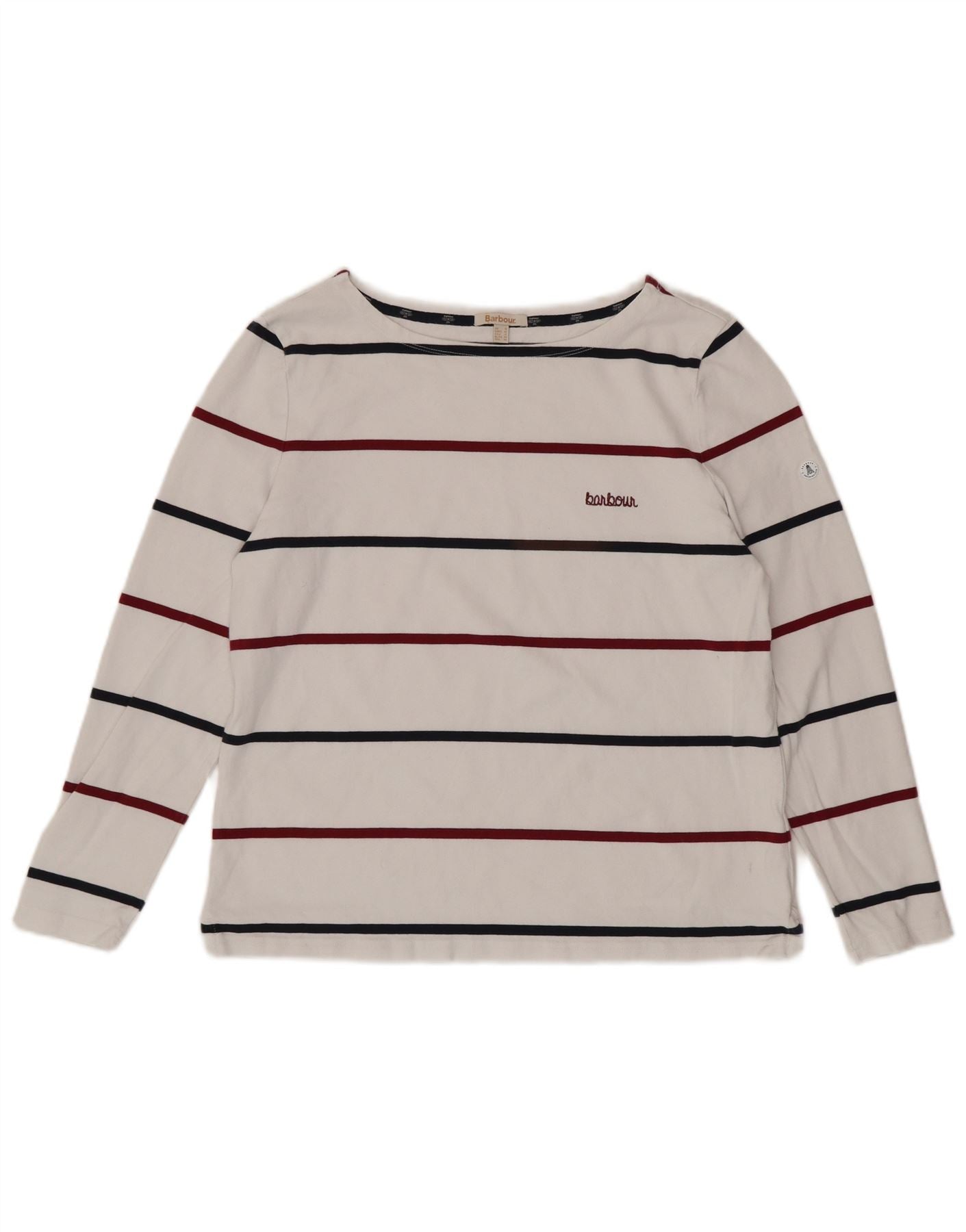 BARBOUR Top pentru femei cu mânecă lungă UK 16 mare, bumbac cu dungi albe