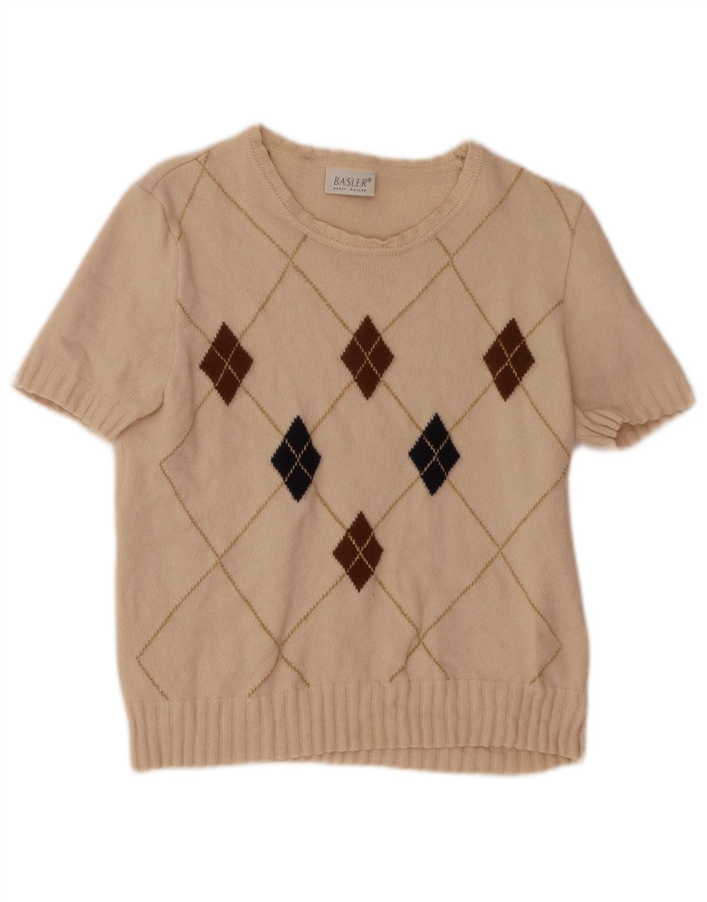 BASLER Womens Boat Neck Jumper Sweater EU 38 Medium Beige Argyle/Diamond