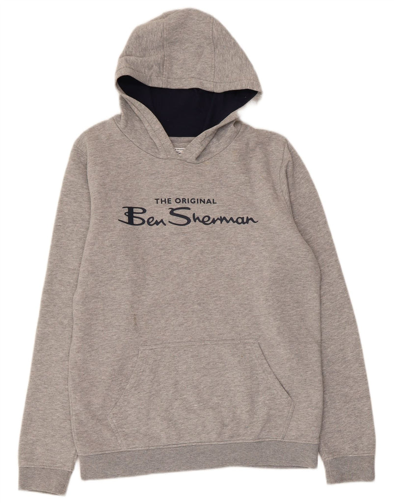 BEN SHERMAN Boys Graphic Hoodie Jumper 14-15 Years Grey Cotton