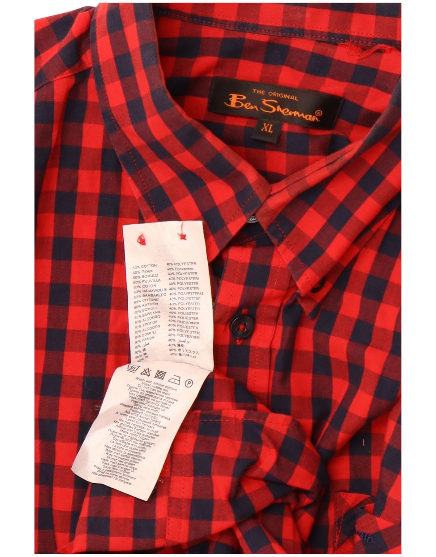 - AI Description: This Ben Sherman mens shirt is crafted from a comfortable cotton blend fabric. It features a classic red gingham check pattern. The collared neckline and button-up front offer a timeless look. Short sleeves and a regular fit ensure comfort and ease of wear. A subtle logo accent and practical pockets complete the design, perfect for a smart casual style.