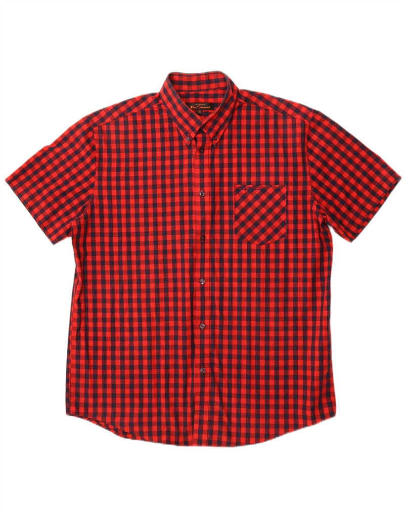 BEN SHERMAN Mens Short Sleeve Shirt XL Red Gingham Cotton