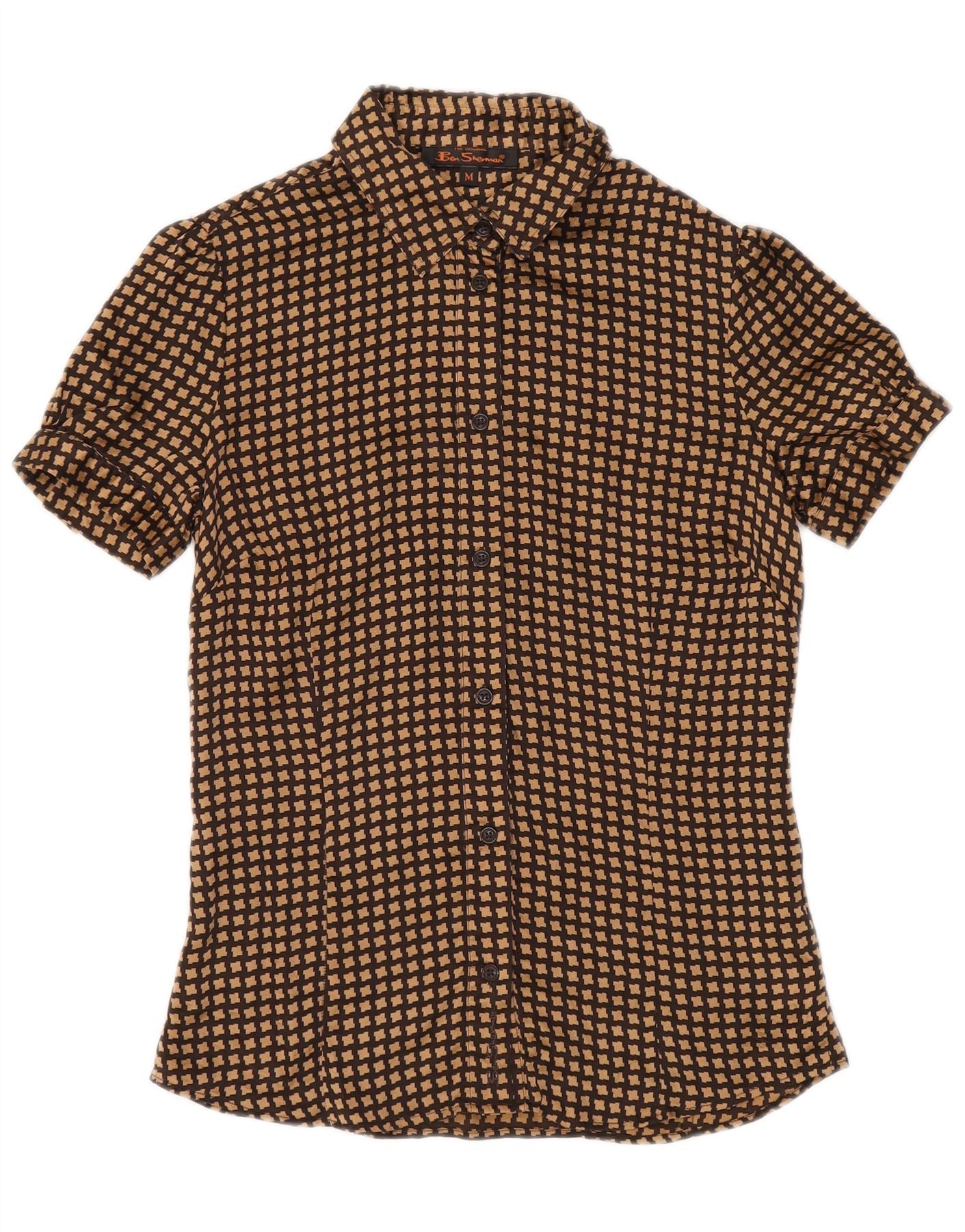 BEN SHERMAN Bluză cămașă pentru femei UK 12 Medium Brown Houndstooth