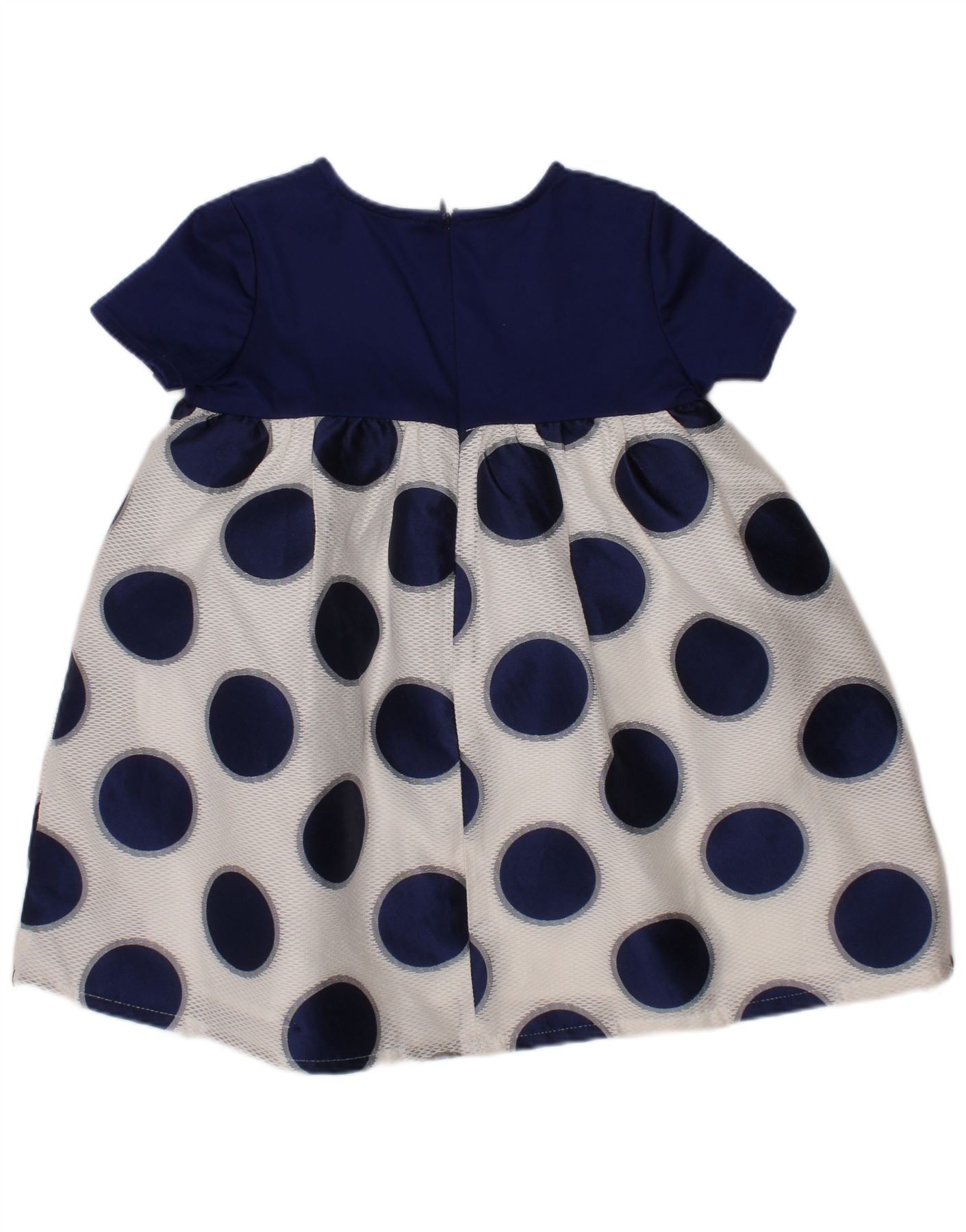 BENETTON Baby Girls A-Line Dress 18-24 Months Navy Blue Polka Dot Cotton