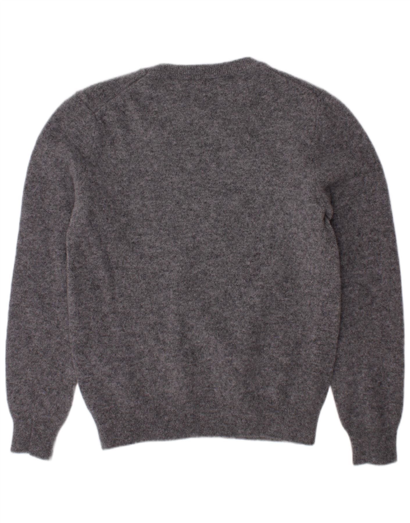 Pulover pentru fete cu gât roșu BENETTON 9-10 ani, gri din lână merinos