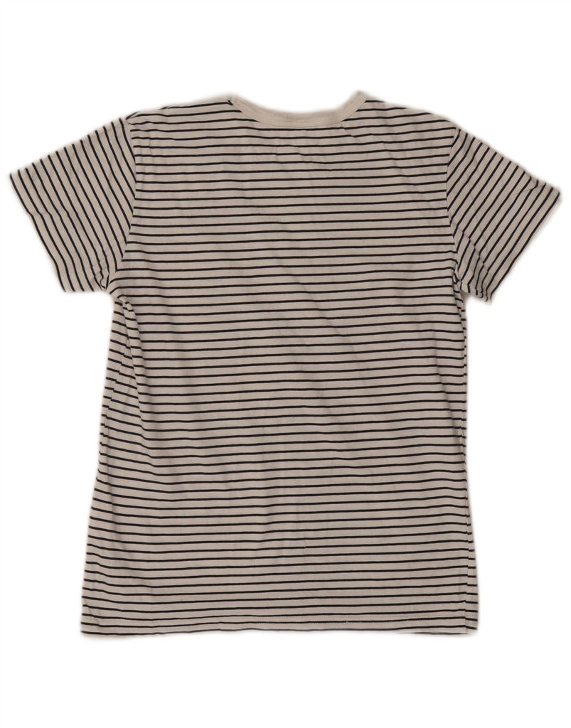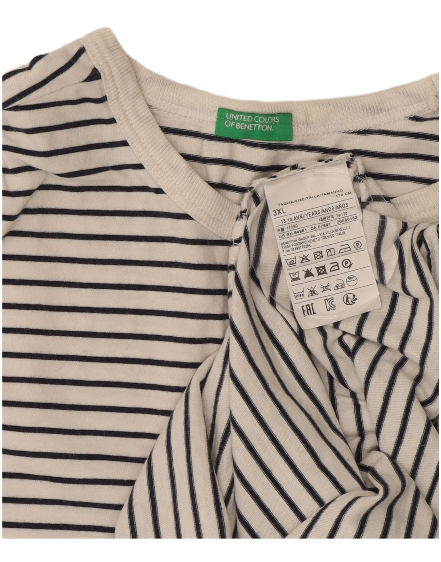 BENETTON Girls T-Shirt Top 13-14 Years 3XL White Striped Cotton
