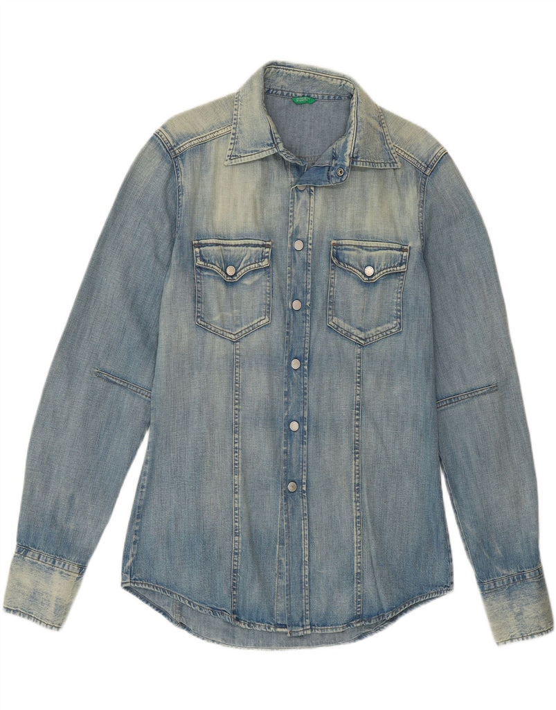 Cămașă din denim pentru bărbați BENETTON, din bumbac albastru mediu