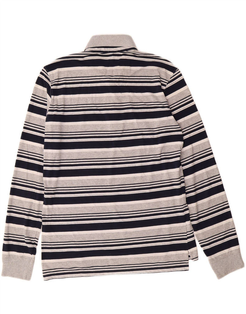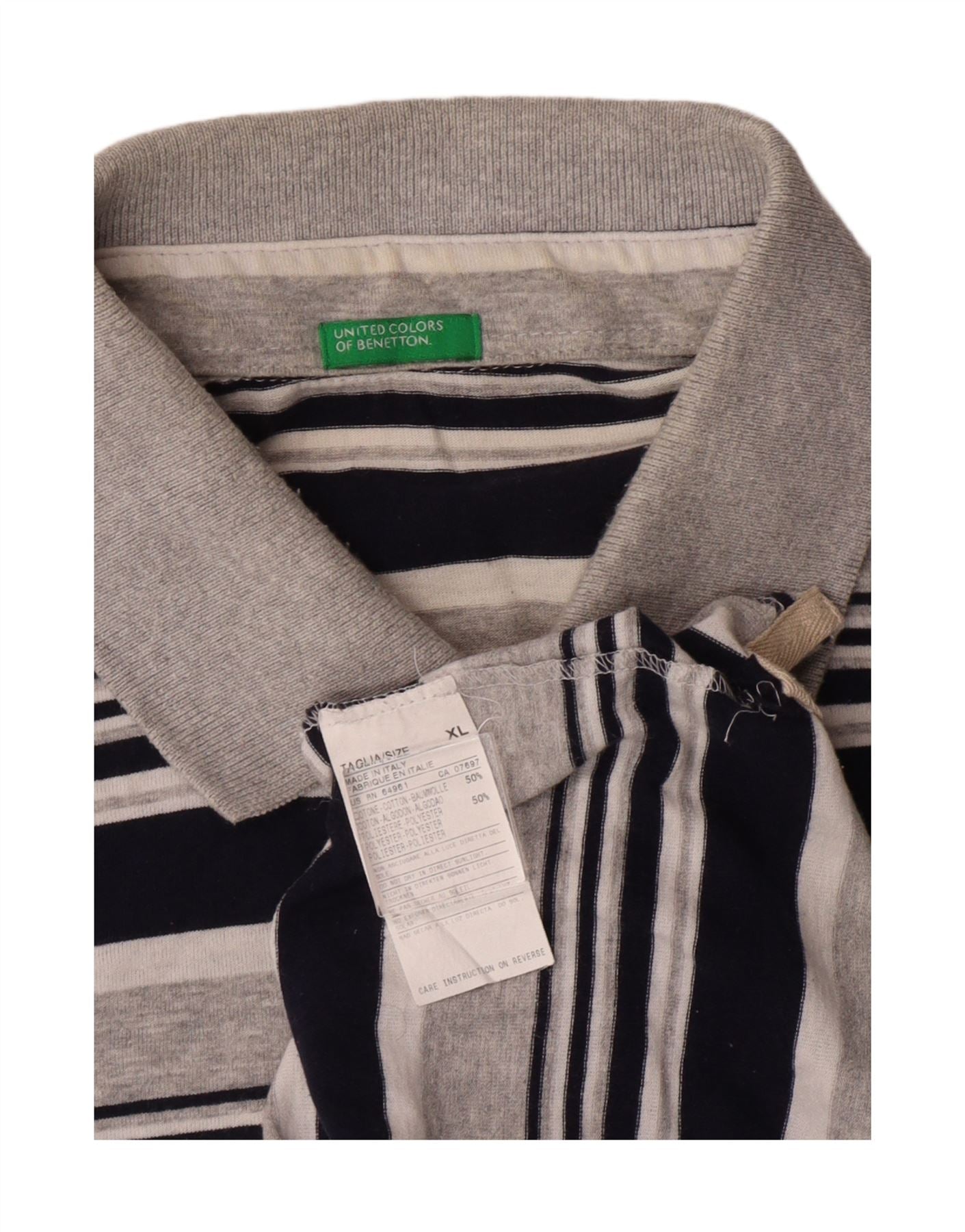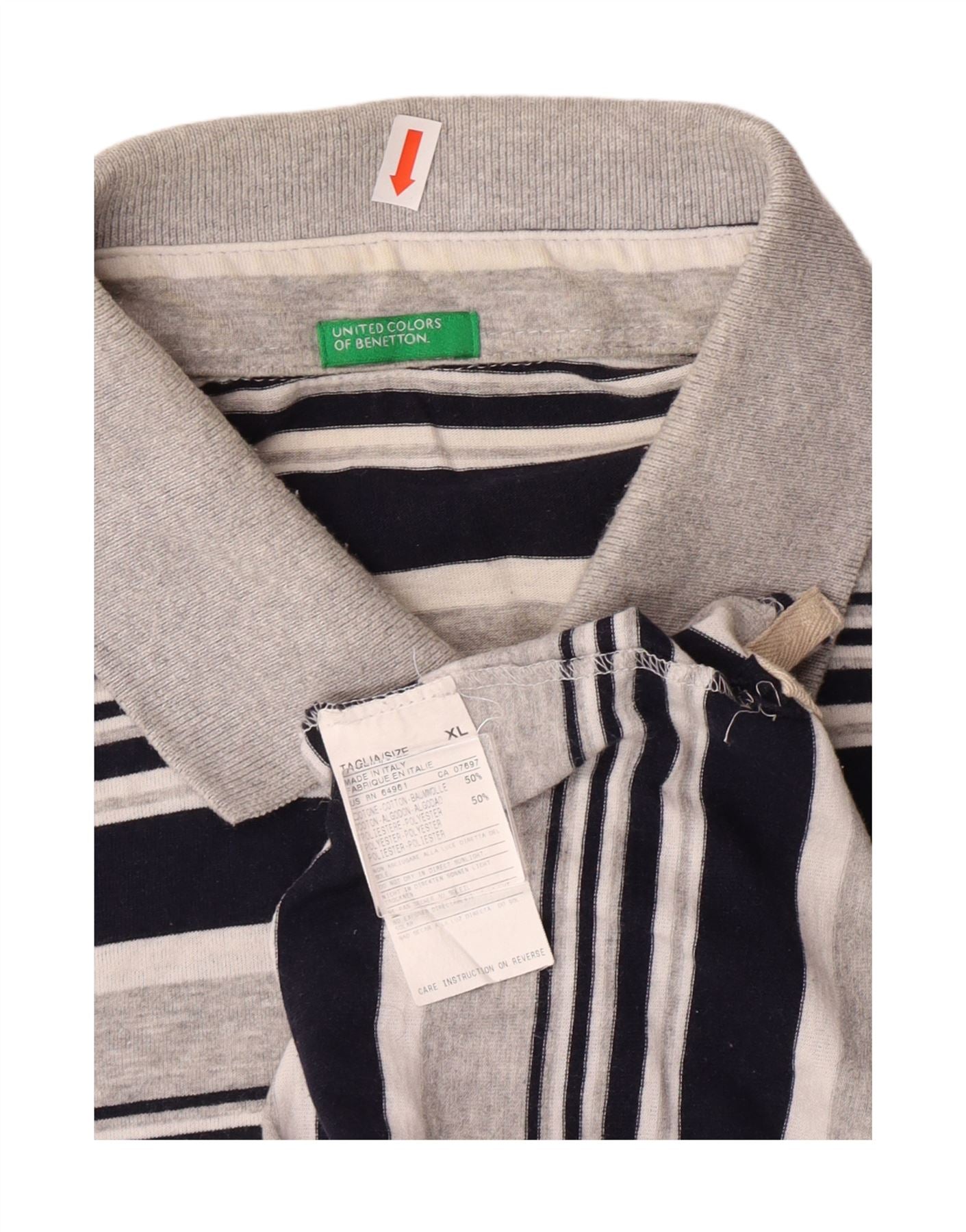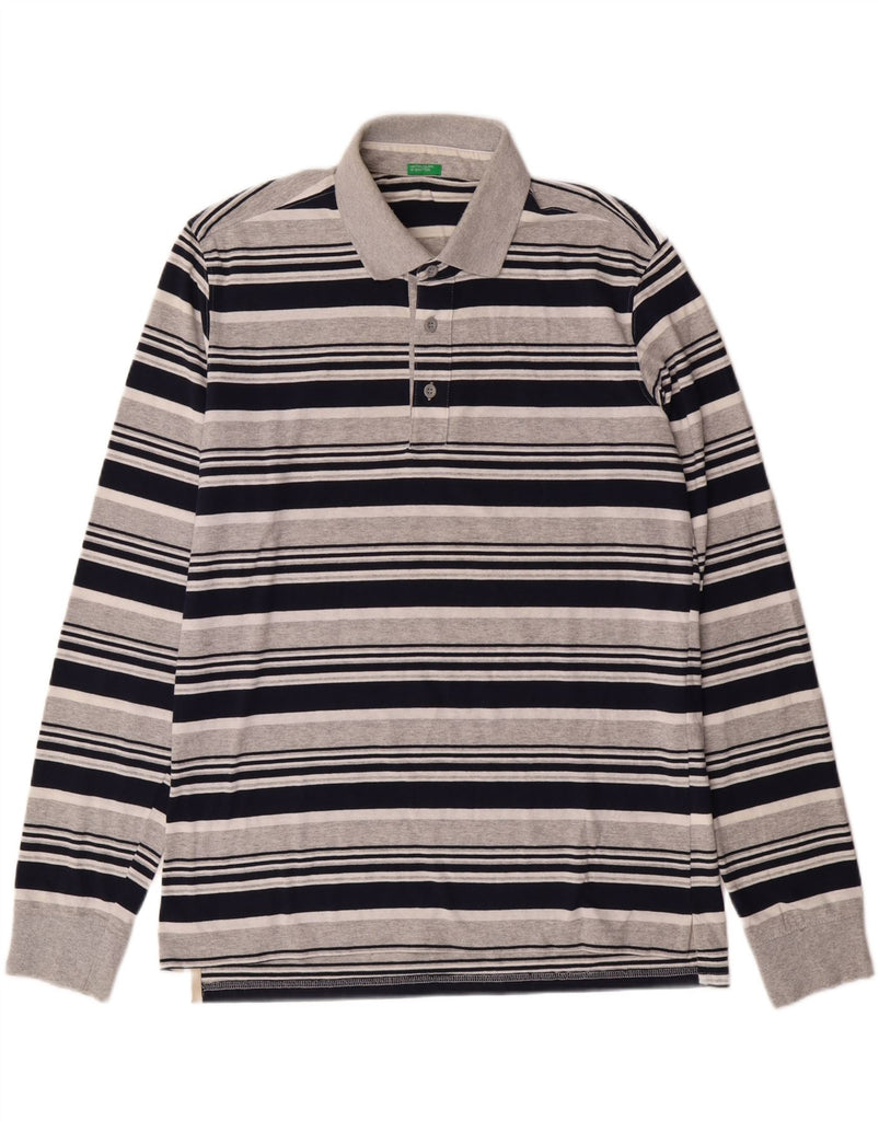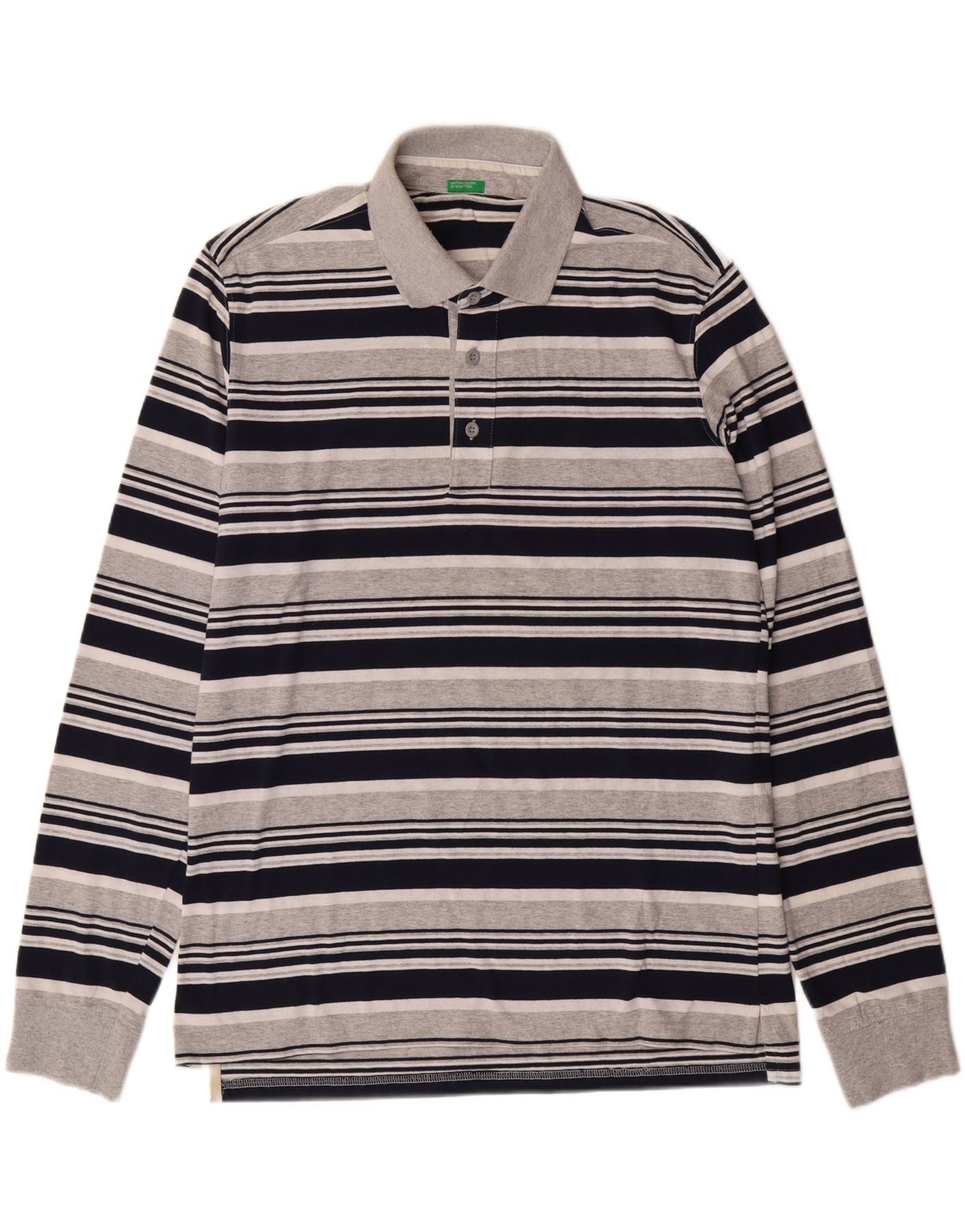 BENETTON Mens Long Sleeve Polo Shirt XL Navy Blue Striped Cotton