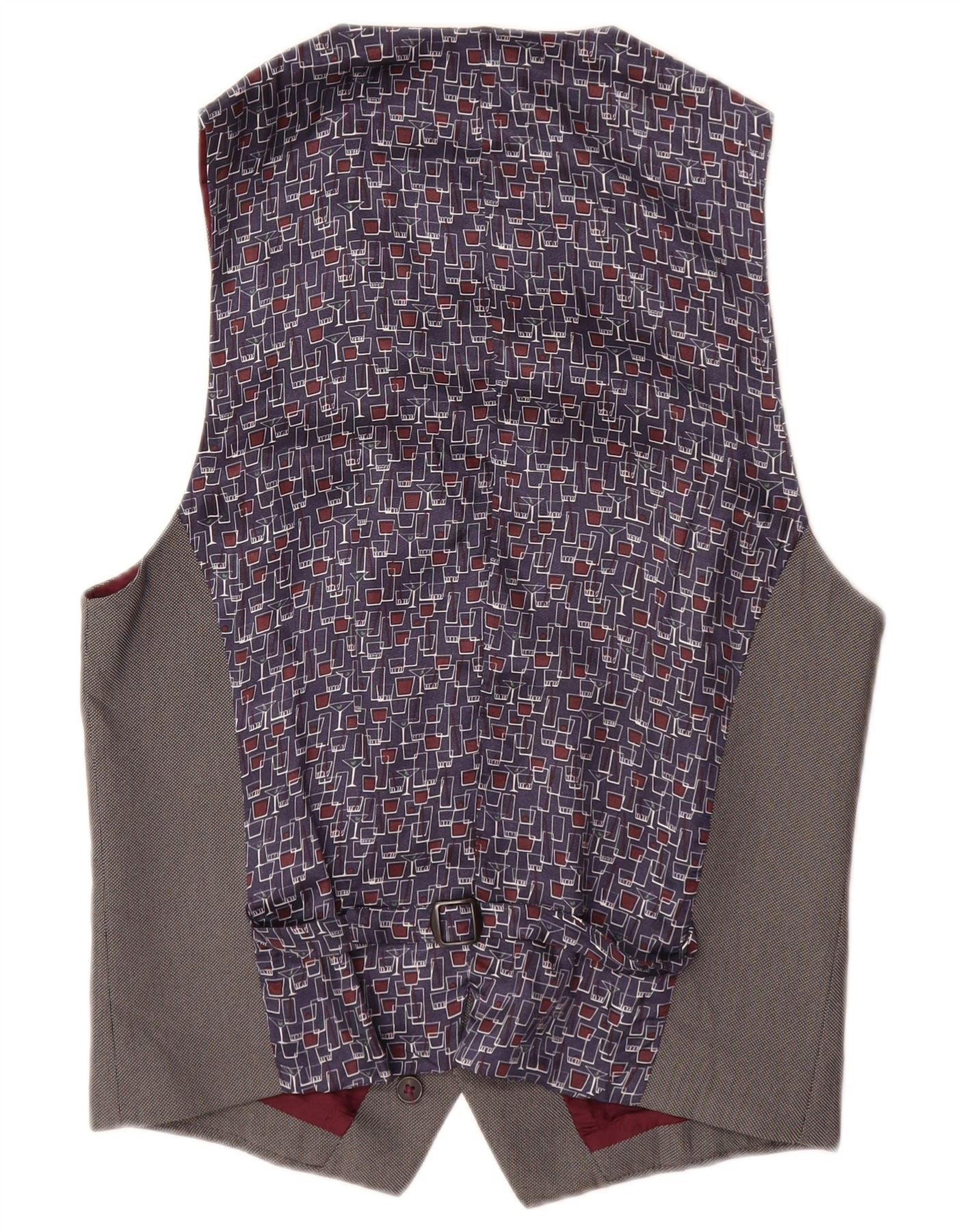 - Descriere AI: Această vestă pentru bărbați United Colors Of Benetton este realizată dintr-un amestec de viscoză țesătură gri. Are un decolteu clasic în V și o închidere frontală cu cinci nasturi. Designul fără mâneci oferă un aspect inteligent, pe măsură. În interior, un model geometric izbitor aliniază haina, adăugând un detaliu unic. Această vestă cu potrivire obișnuită include buzunare funcționale, îmbinând stilul clasic cu elemente practice pentru un finisaj rafinat.