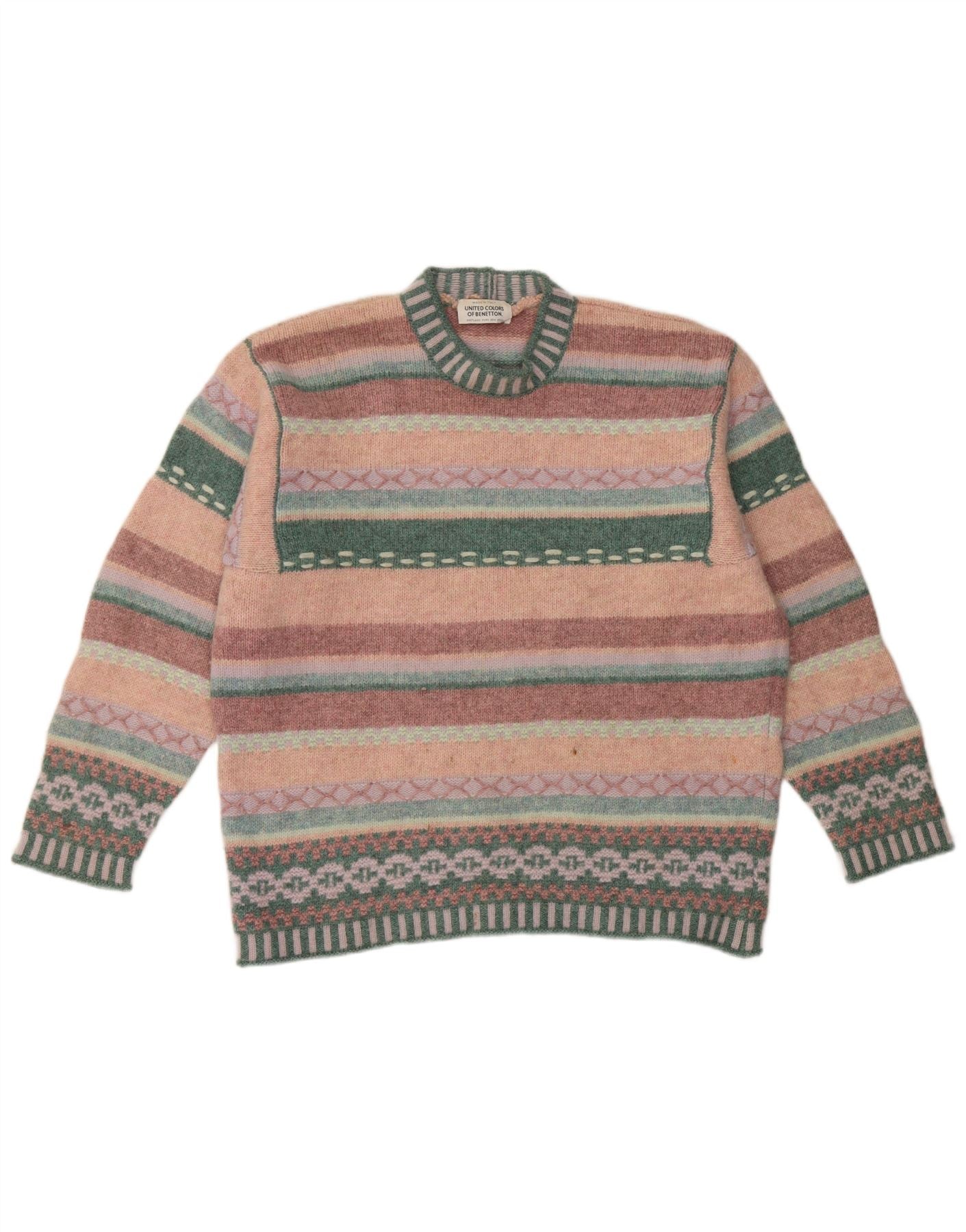 Pulover pentru damă BENETTON cu decolteu rotund, cu dungi mari, multicolore, UK 16