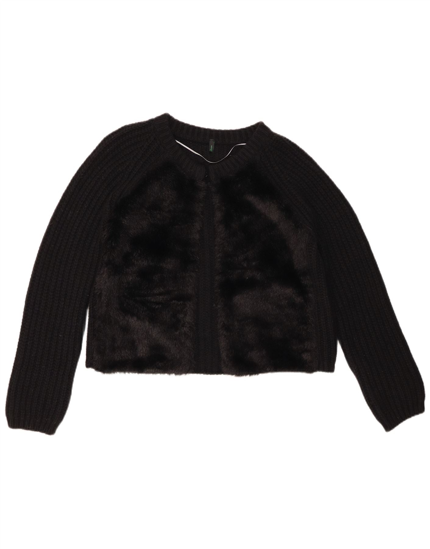 Pulover cardigan crop pentru femei BENETTON UK 10 Lână neagră mică