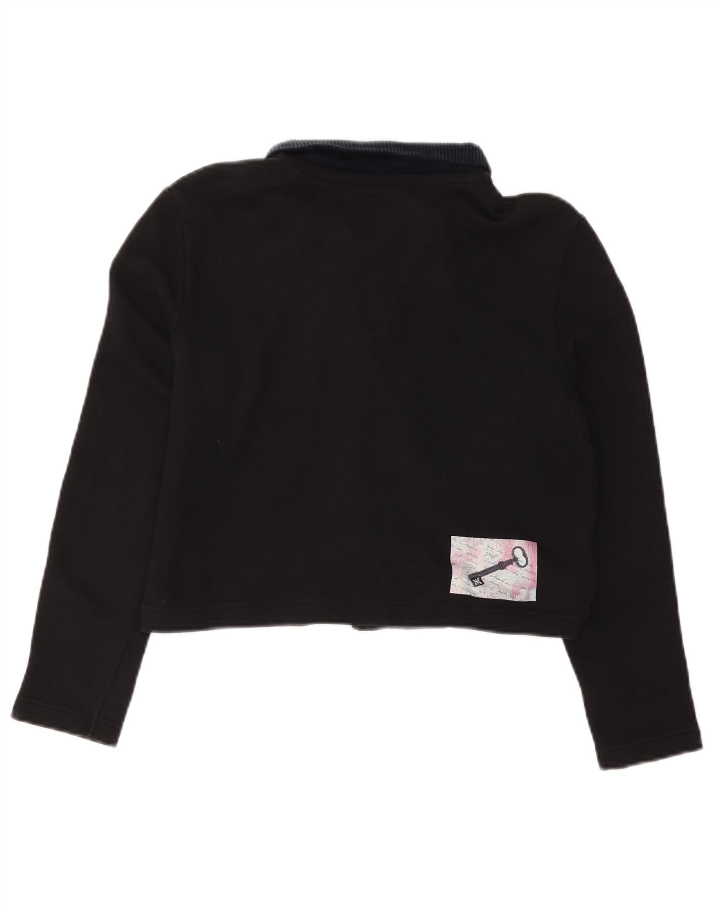 BENETTON Tricou polo oversized cu grafic crop pentru femei UK 10 Small Black