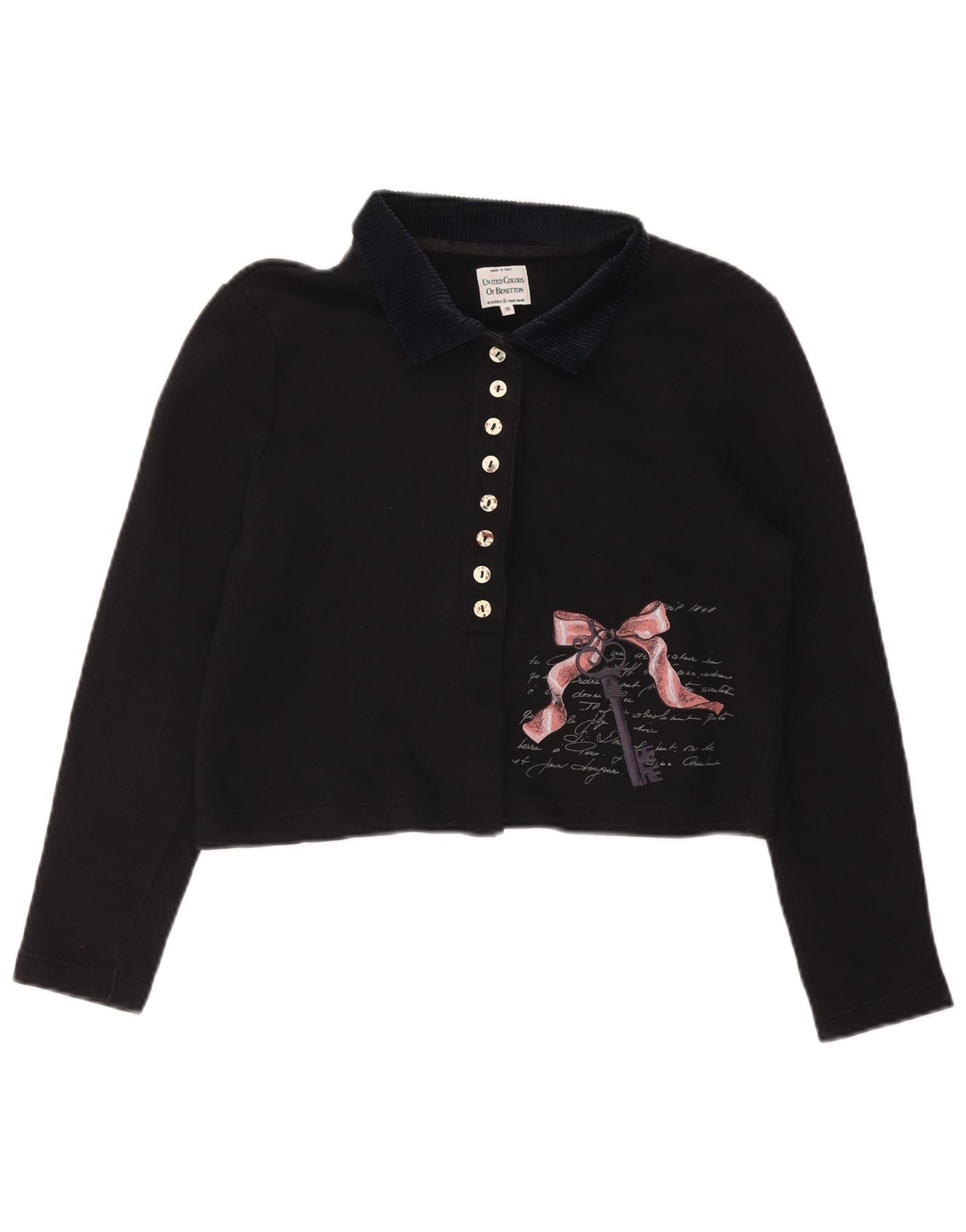 Home > Îmbrăcăminte Benetton de epocă > Femei > BENETTON Tricou polo oversized cu grafic crop pentru femei UK 10 Small Black