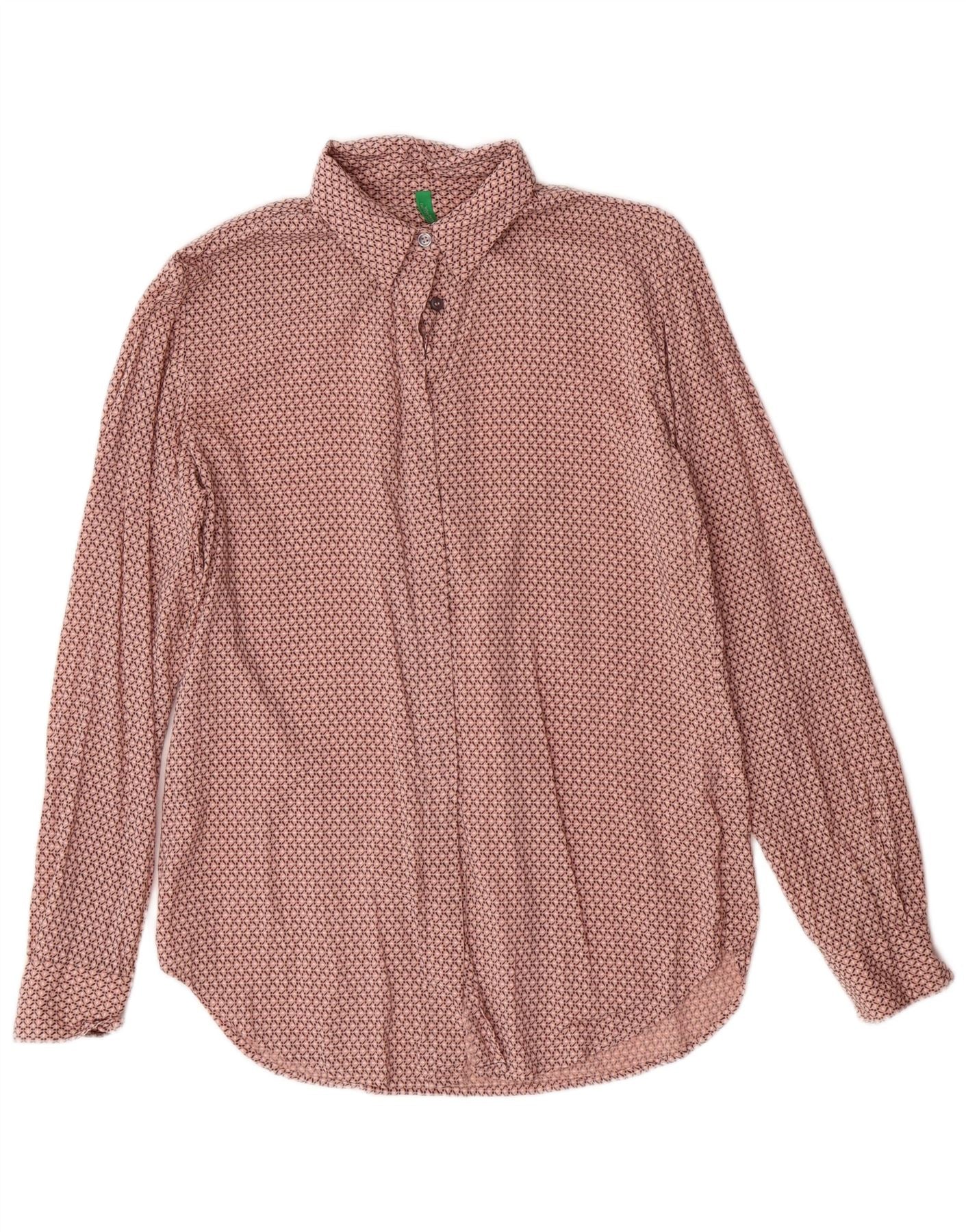 Cămașă cu paragate supradimensionată pentru femei BENETTON UK 6 XS roz modal geometric