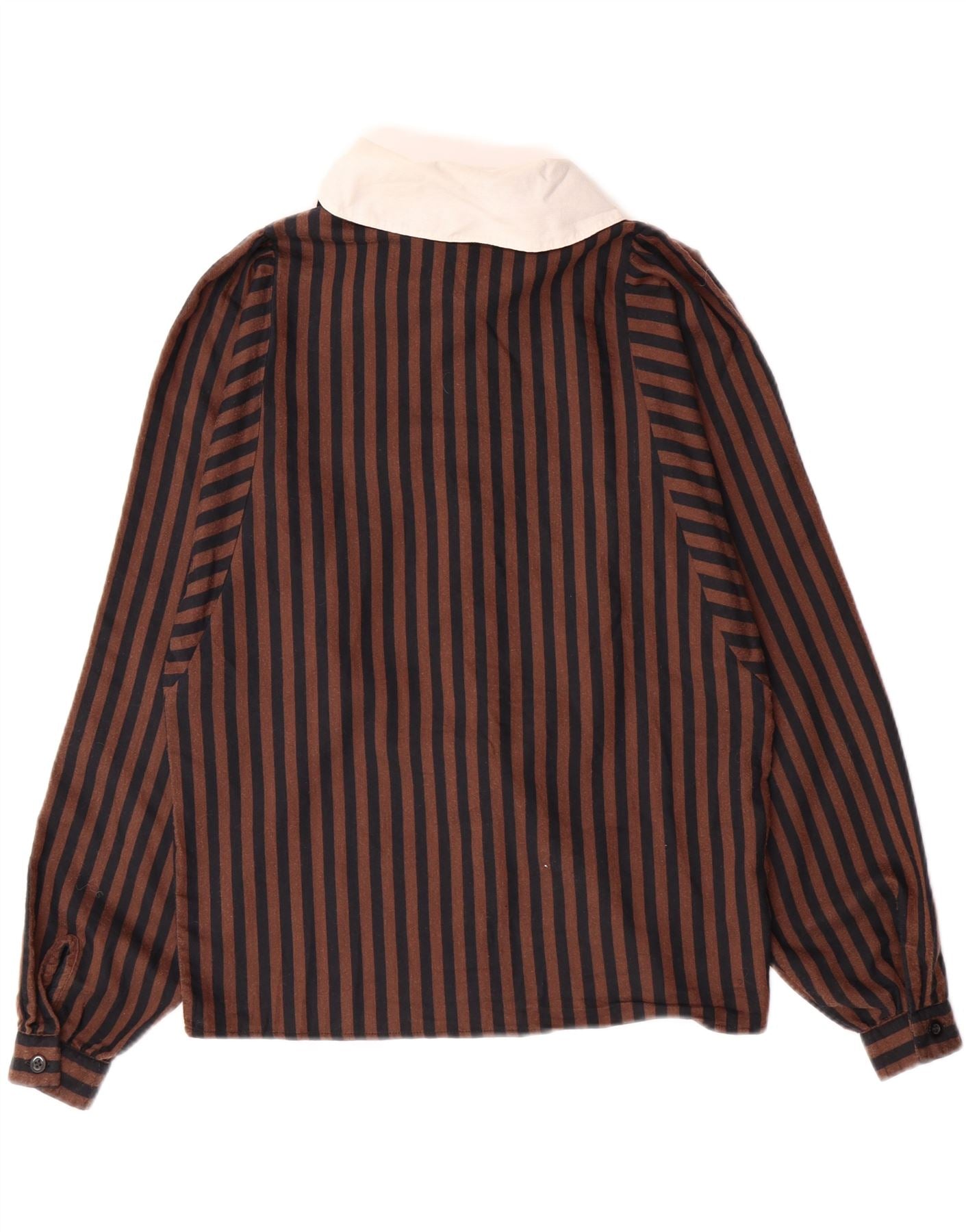 BENETTON Womens Shirt Blouse IT 44 Medium Brown Striped Cotton