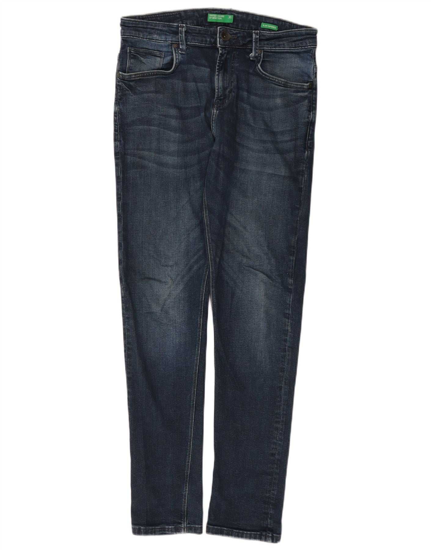 BENETTON Blugi subțiri conici pentru femei W30 L30 Bumbac albastru