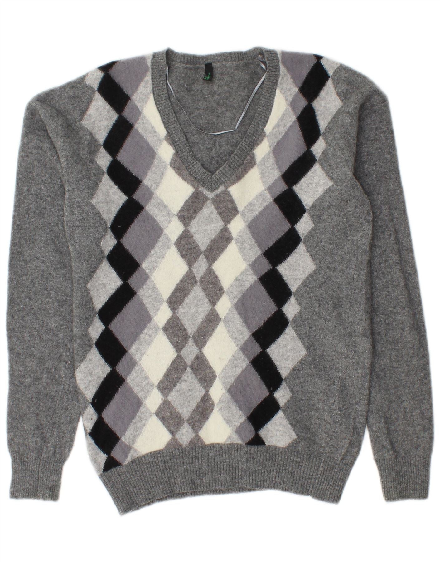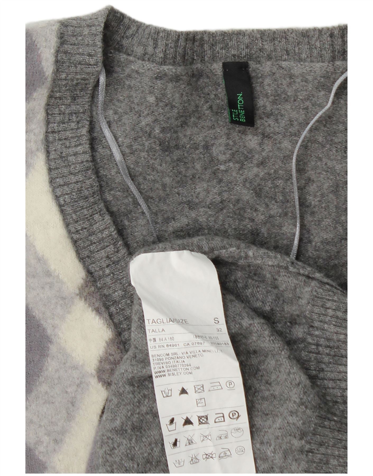 Home > Îmbrăcăminte Benetton de epocă > Femei > Pulover pentru femei cu decolteu în V BENETTON UK 10 mic gri Argyle/Lână diamant