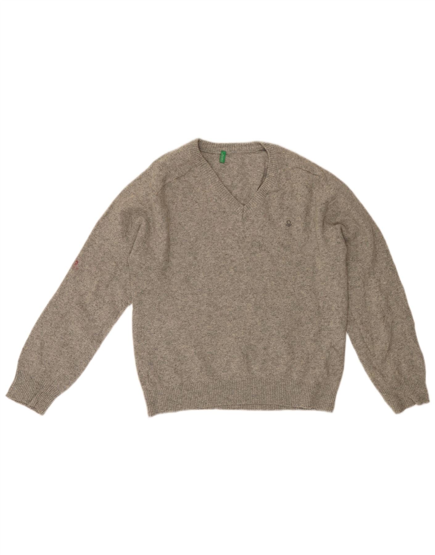 Home > Îmbrăcăminte Benetton de epocă > Femei > Pulover pentru femei cu decolteu în V BENETTON UK 18 XL, lână de miel gri