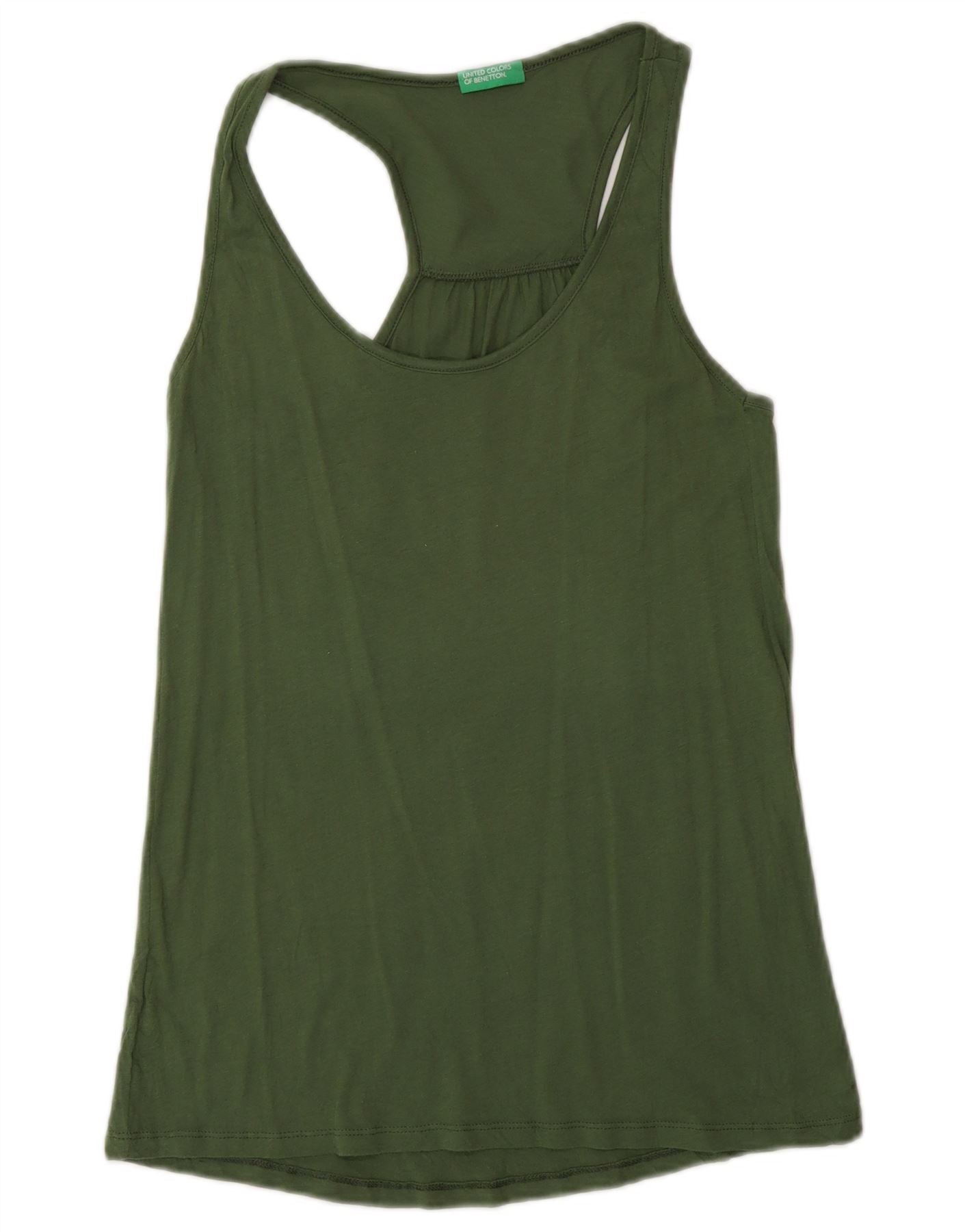 - Descriere AI: Acest top de vestă pentru femei United Colors Of Benetton este confecționat din țesătură moale din jerseu verde. Are un gât rotund clasic și un design fără mâneci. Potrivirea obișnuită oferă o purtare confortabilă. Stilul raserback oferă ușurință de mișcare. Designul său simplu asigură un stil versatil pentru ținutele de zi cu zi.