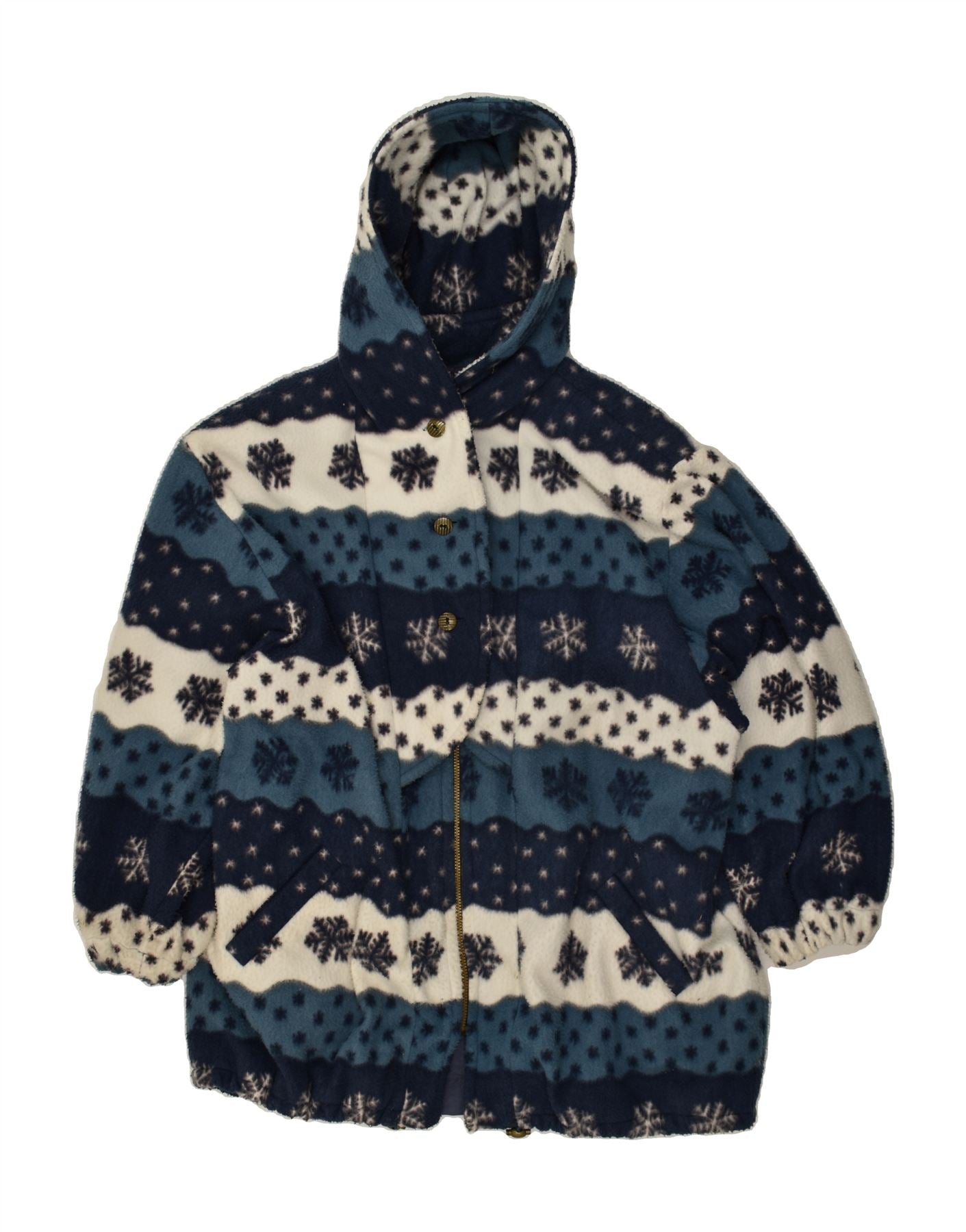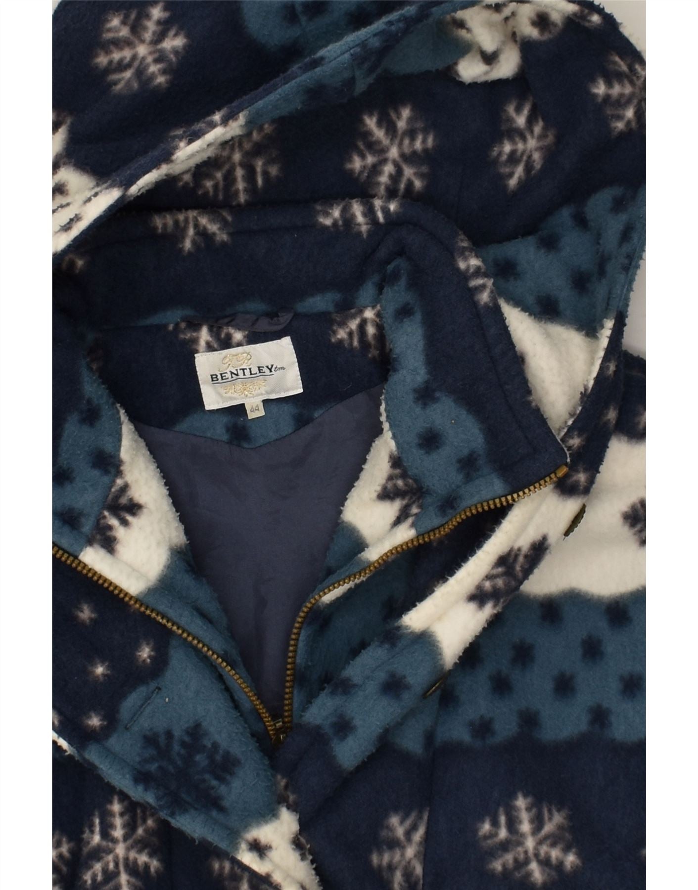 BENTLEY Womens Oversized Hooded Fleece Jacket EU 44 XL Navy Blue Fair Isle