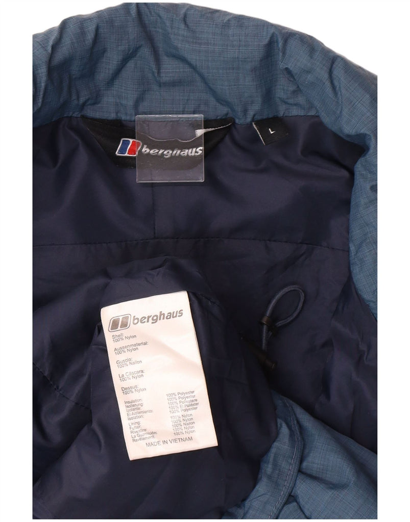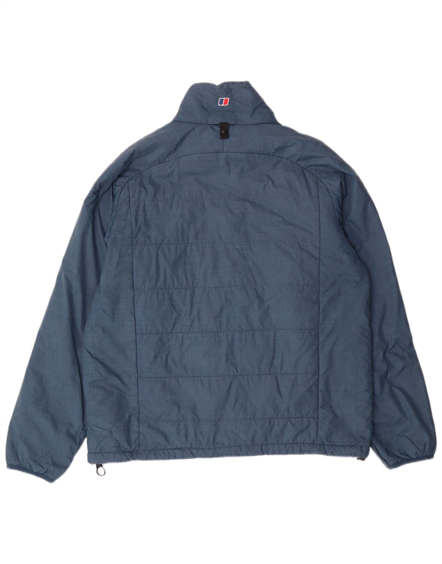 - AI Description: This Berghaus men's Padded Jacket is crafted from durable blue nylon, offering a padded and woven texture. It features a collared neckline and long sleeves. The full zip closure ensures practicality, complemented by zipped pockets for secure storage. A regular fit ensures comfort and ease of movement. The design is completed with a subtle brand logo accent.