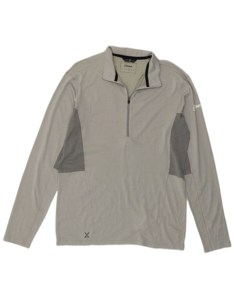 BERGHAUS Mens Zip Neck Pullover Tracksuit Top Large Grey Colourblock