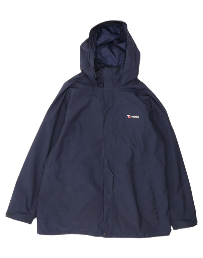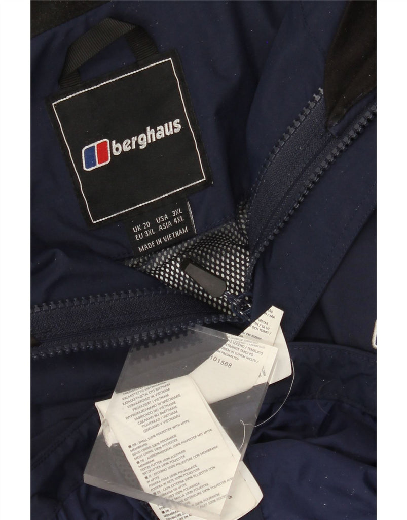 BERGHAUS Womens Hooded Rain Jacket UK 20 2XL Navy Blue Polyester