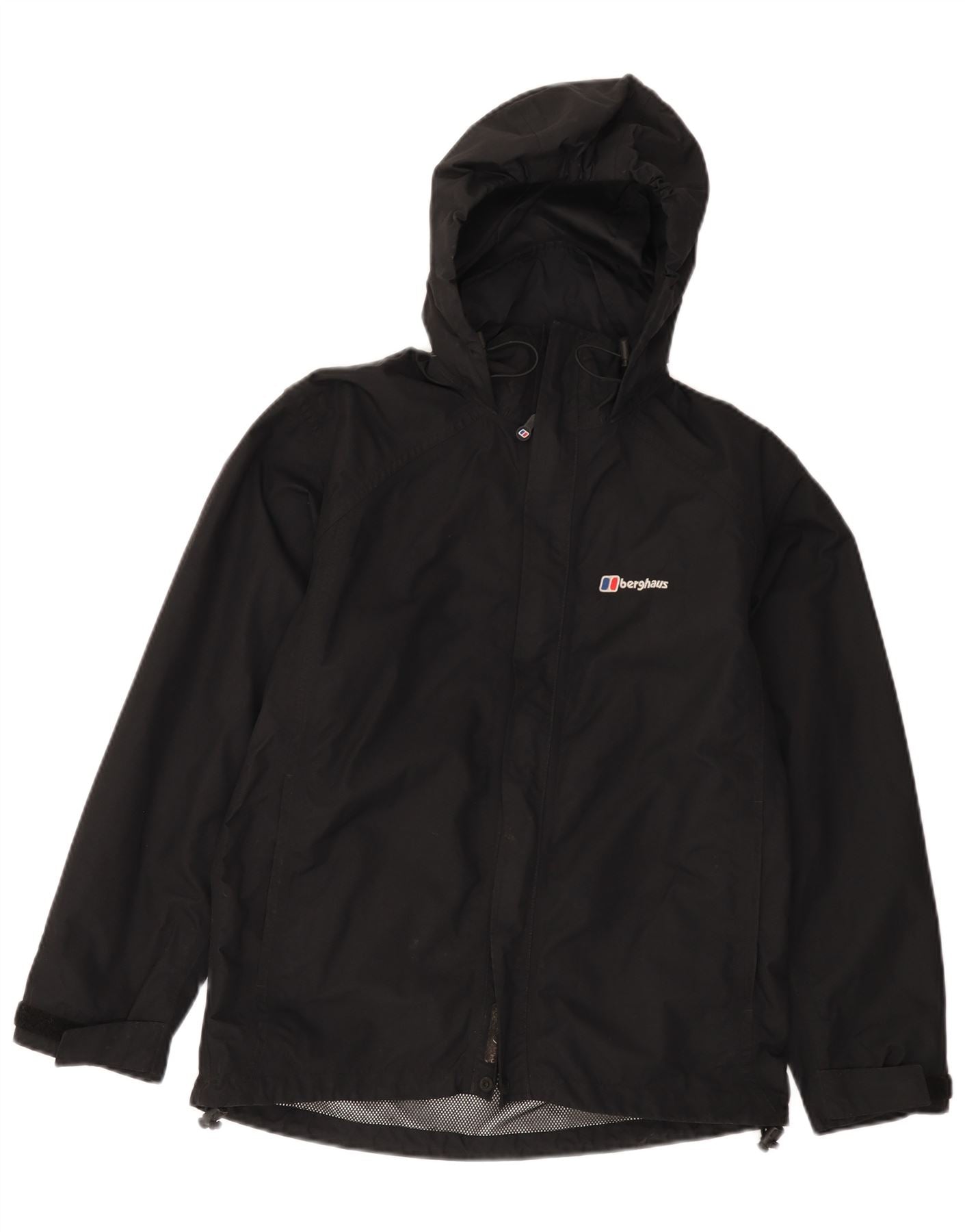Home > Îmbrăcăminte Berghaus de epocă > Femei > jachete > Jachetă de ploaie cu glugă supradimensionată pentru femei Berghaus UK 10 Nylon negru mic