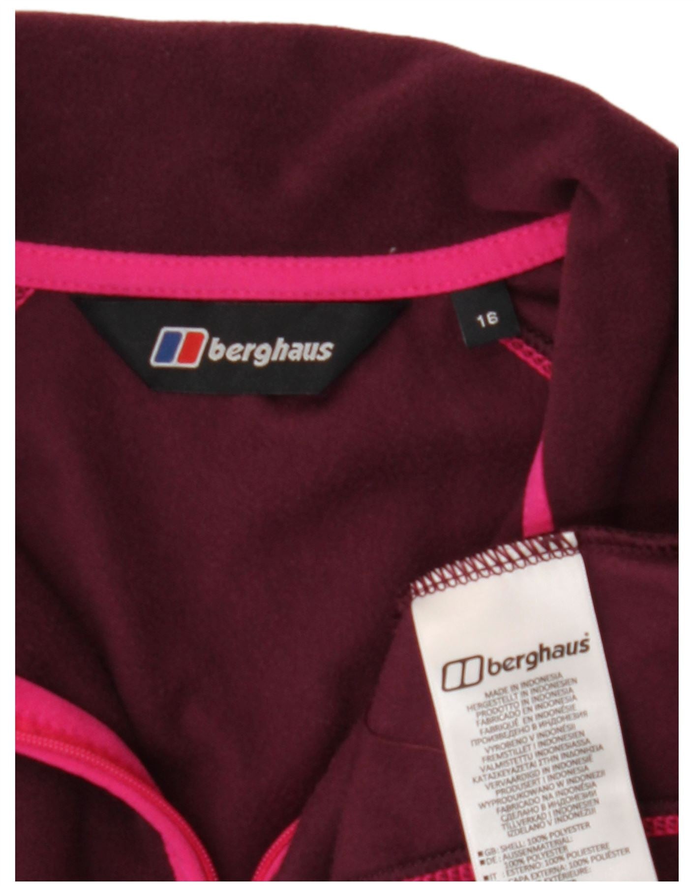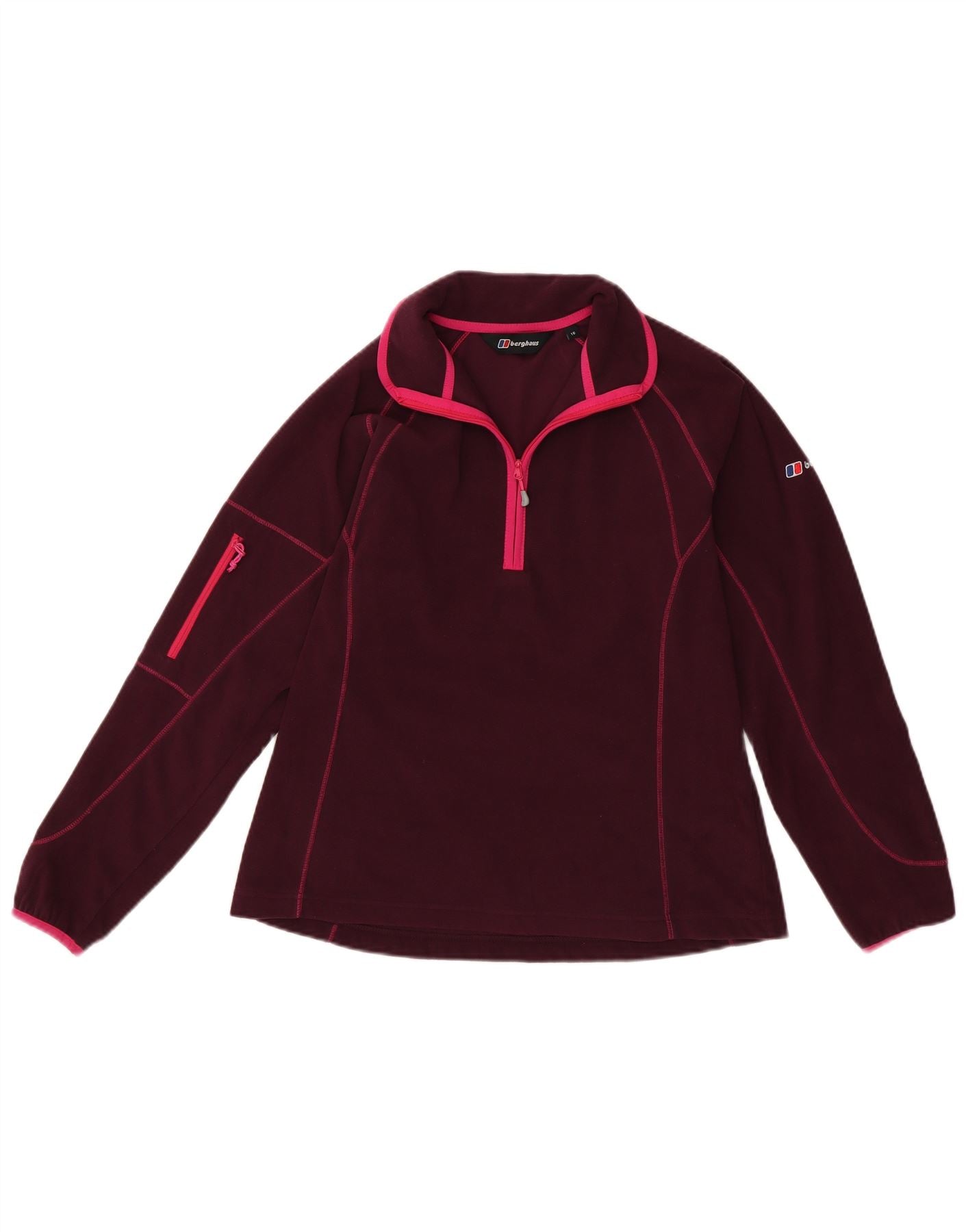 BERGHAUS Womens Zip Neck Fleece Jumper UK 16 Large Burgundy Polyester