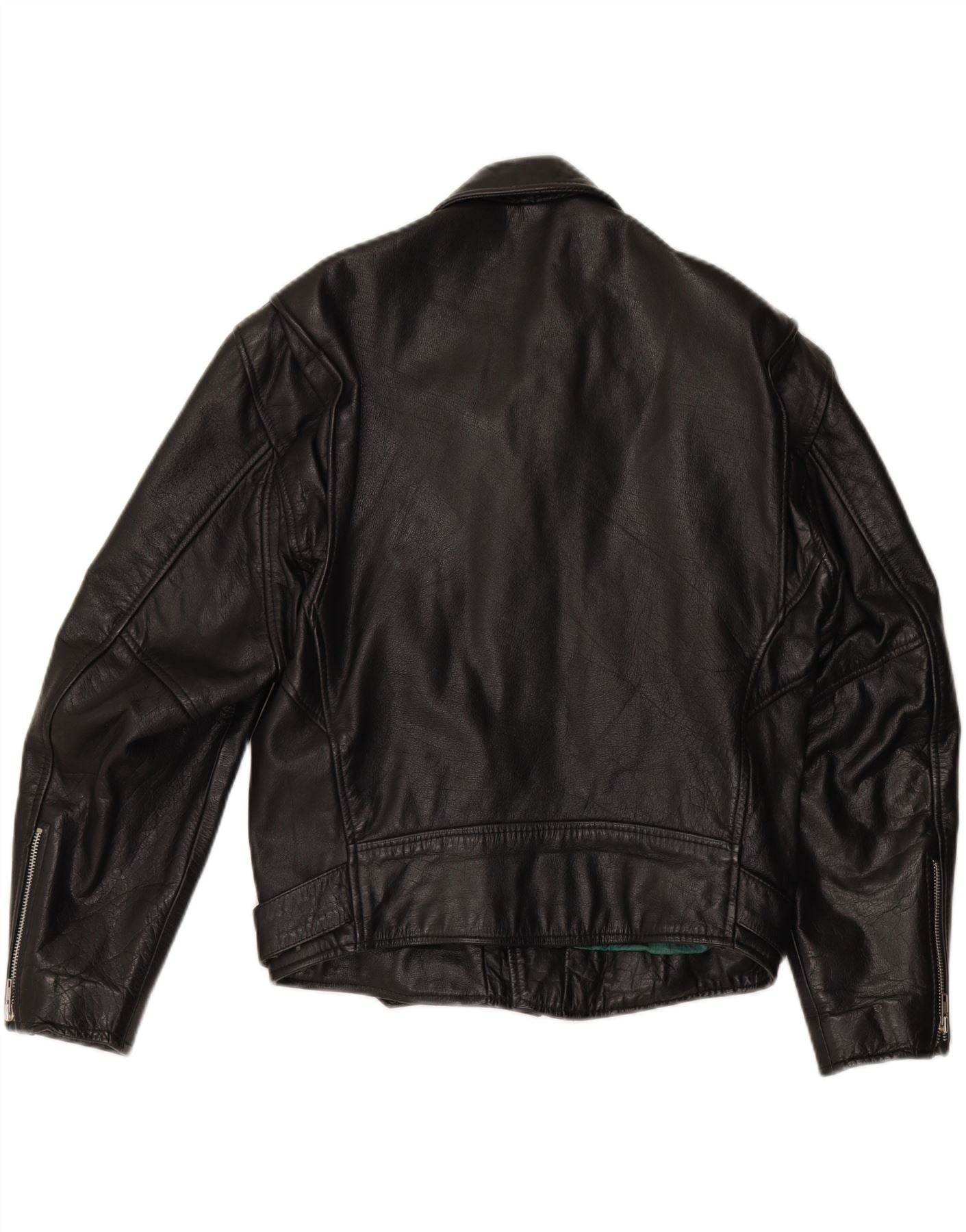 BERTO LUCCI Jachetă de motociclist din piele pentru bărbați UK 36 Mic din piele neagră