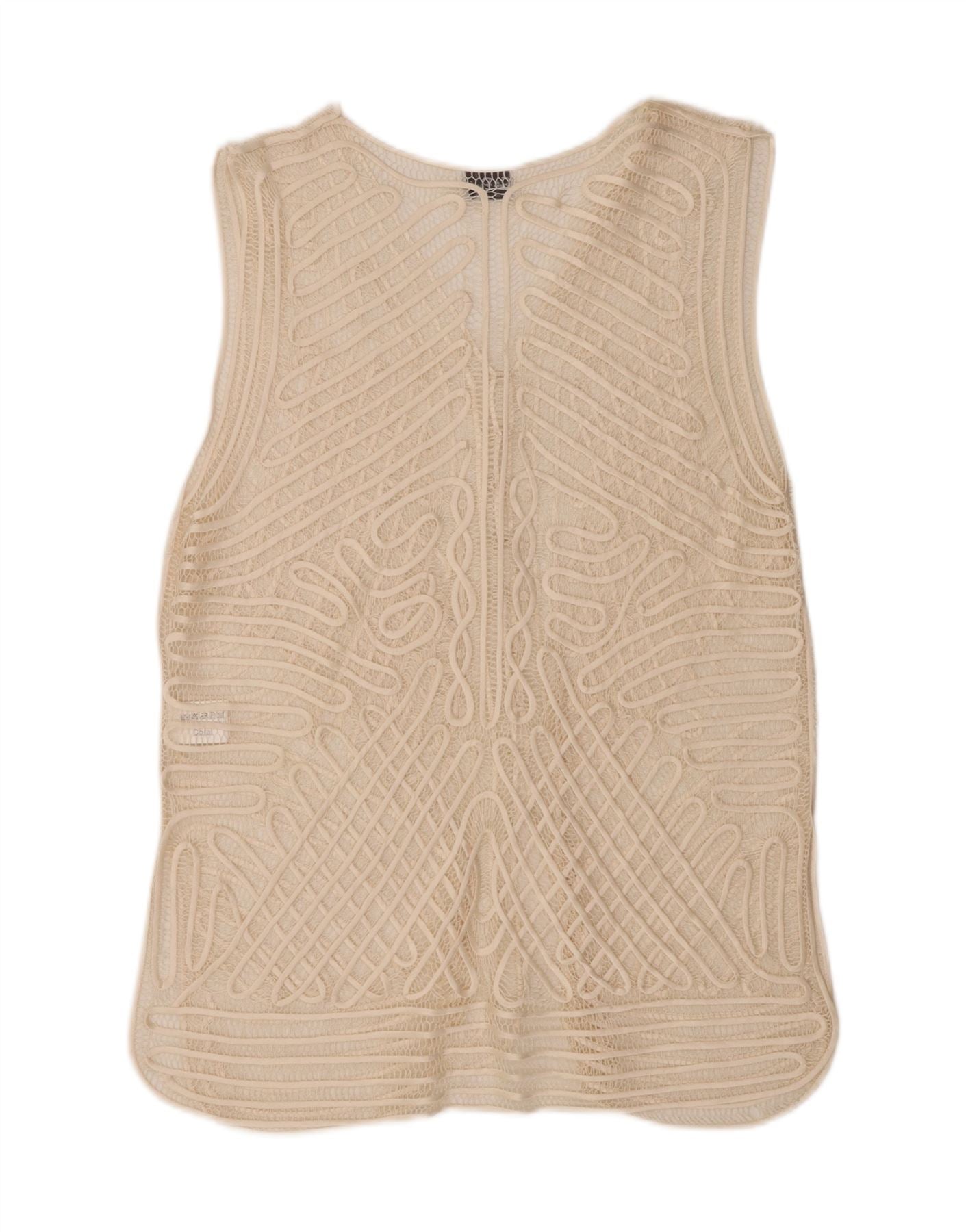 BETTY BARCLAY Womens Sleeveless Crochet Cardigan Top UK 18 XL Off White